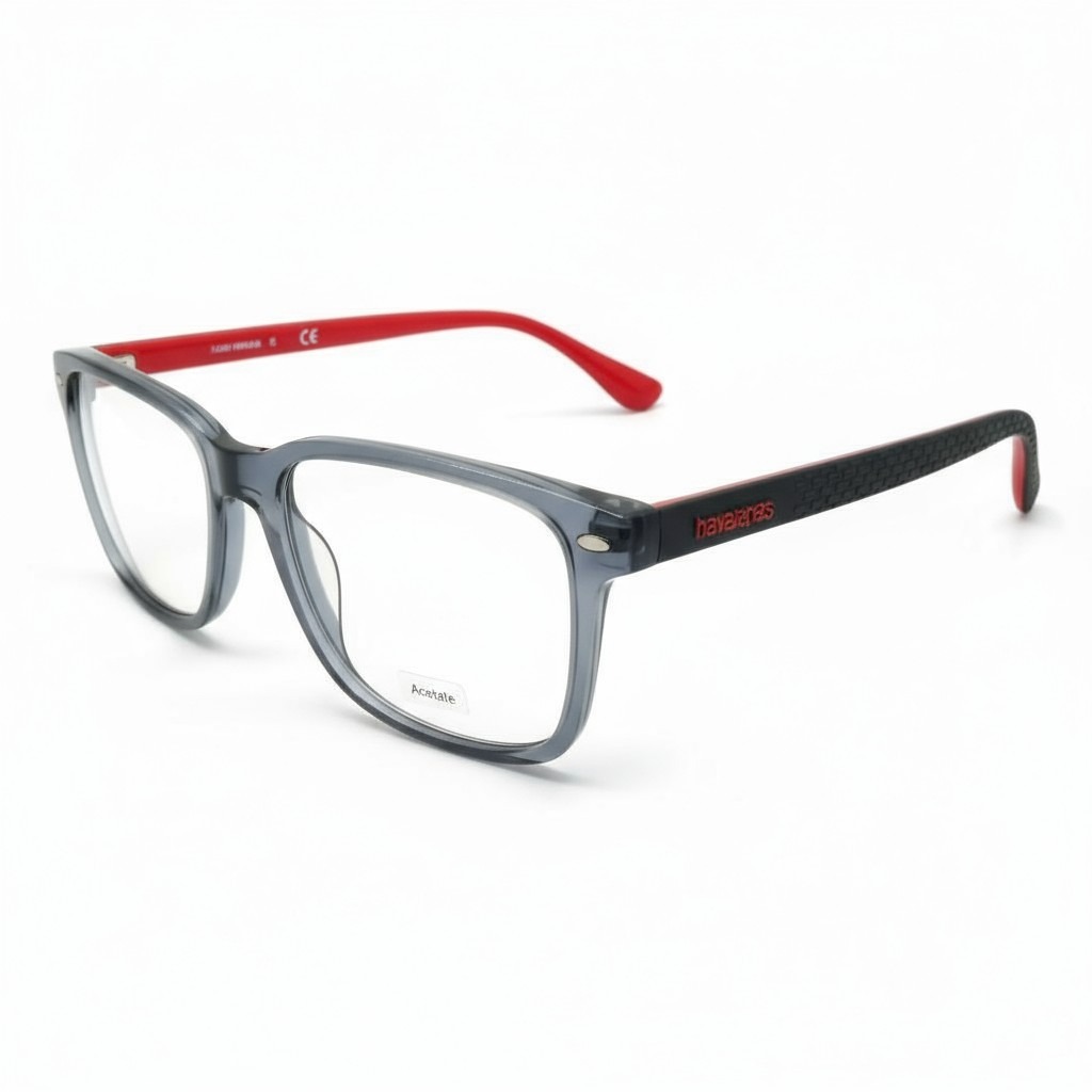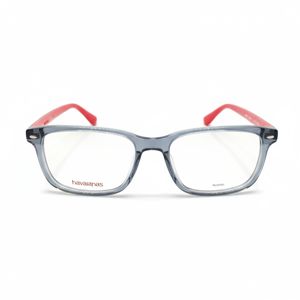 O modelo Havaianas LEME/V 268 145 BS é um óculos de grau masculino que combina o espírito descontraído da marca com um design moderno e versátil. Sua armação em acetato/plástico na cor cinza com detalhes em vermelho oferece um visual leve e elegante, ideal para o uso diário.