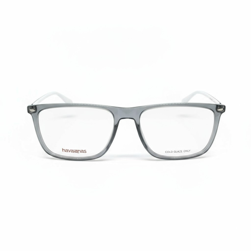O modelo Havaianas PATACHO/V 1HJ 145 BS é um óculos de grau masculino que combina o espírito descontraído da marca com um design moderno e versátil. Sua armação em acetato/plástico na cor cinza com detalhes em branco oferece um visual leve e elegante, ideal para o uso diário.
