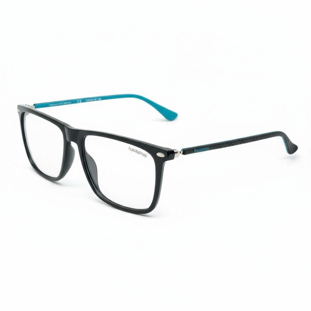 O modelo Havaianas PATACHO/V D51 145 BS é um óculos de grau masculino que combina o espírito descontraído da marca com um design moderno e versátil. Sua armação em acetato/plástico na cor preta com detalhes em azul oferece um visual leve e elegante, ideal para o uso diário.