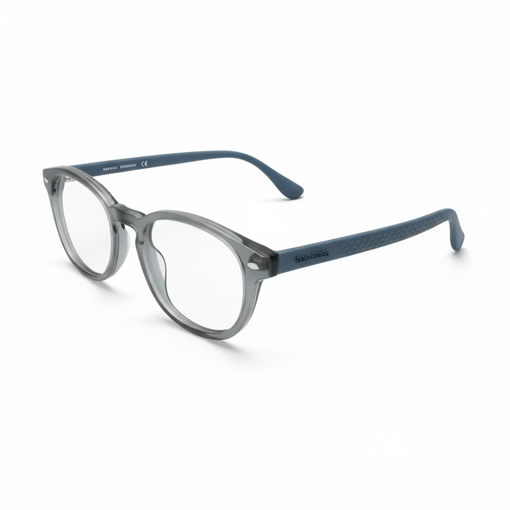 O modelo Havaianas SALVADOR/V KB7 145 BS é um óculos de grau masculino que combina o espírito descontraído da marca com um design moderno e versátil. Sua armação em acetato/plástico na cor cinza com detalhes em azul oferece um visual leve e elegante, ideal para o uso diário.