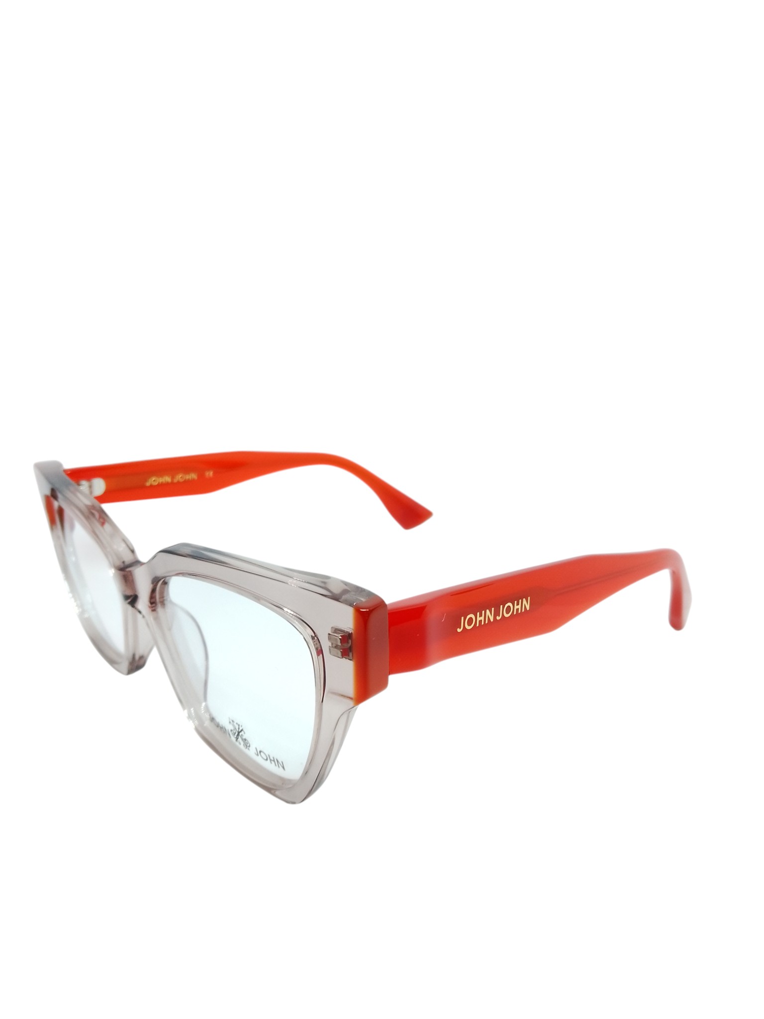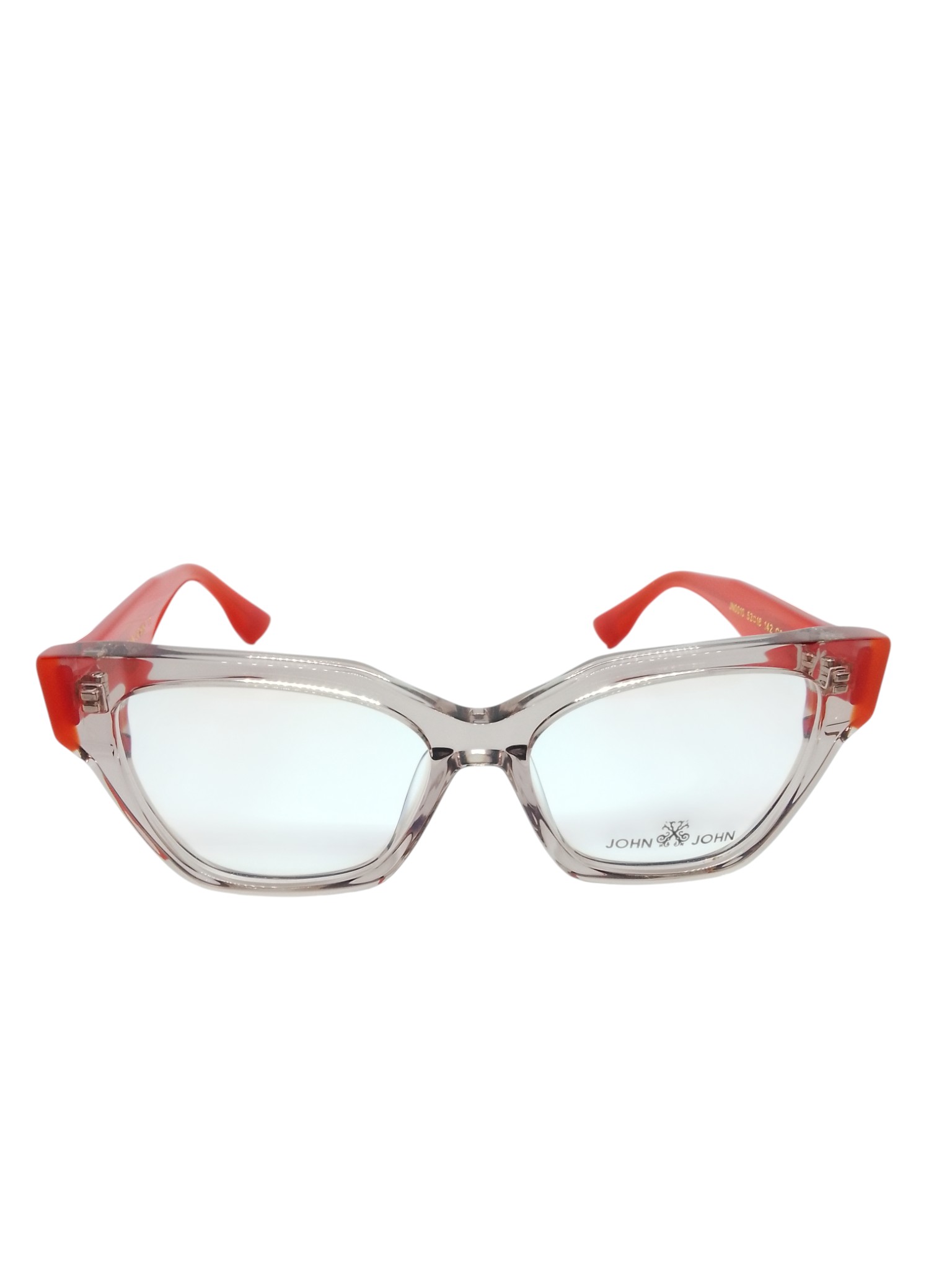 ÓCULOS DE GRAU JOHN JOHN JN0010 C2 53–16–142 – ESTILO FEMININO MODERNO EM ACETATO BICOLOR TRANSLÚCIDO E LARANJA
