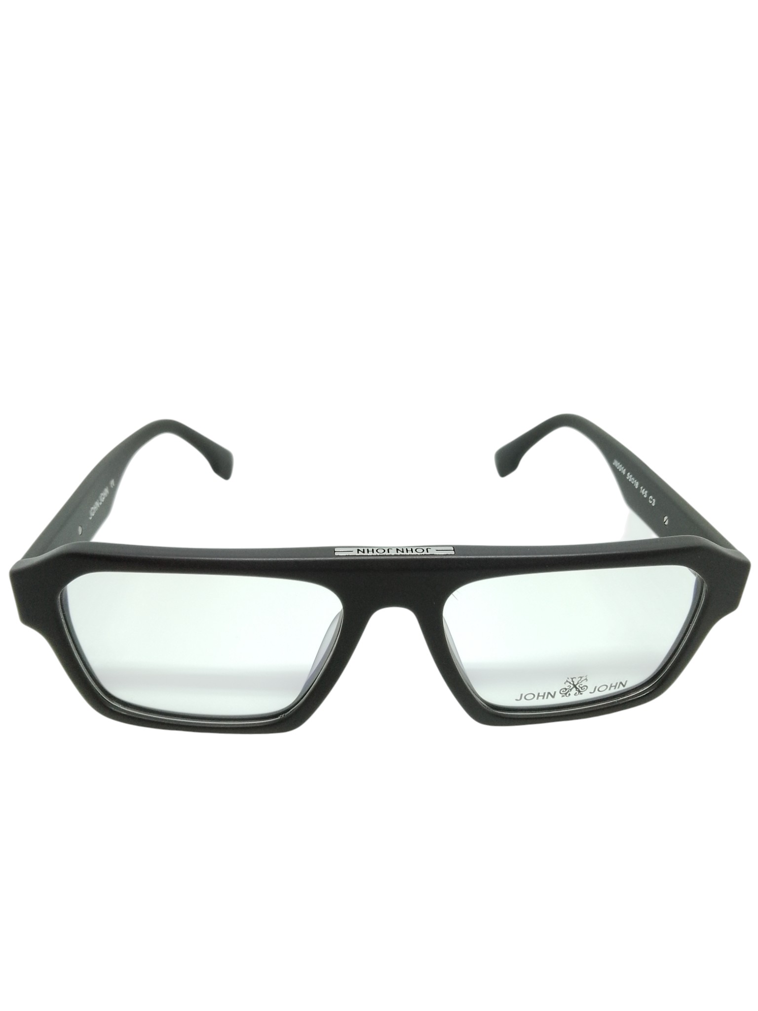 ÓCULOS DE GRAU JOHN JOHN JN0014 C3 55–18–145 – ESTILO UNISSEX EM ACETATO PRETO COM LINHAS MARCANTES