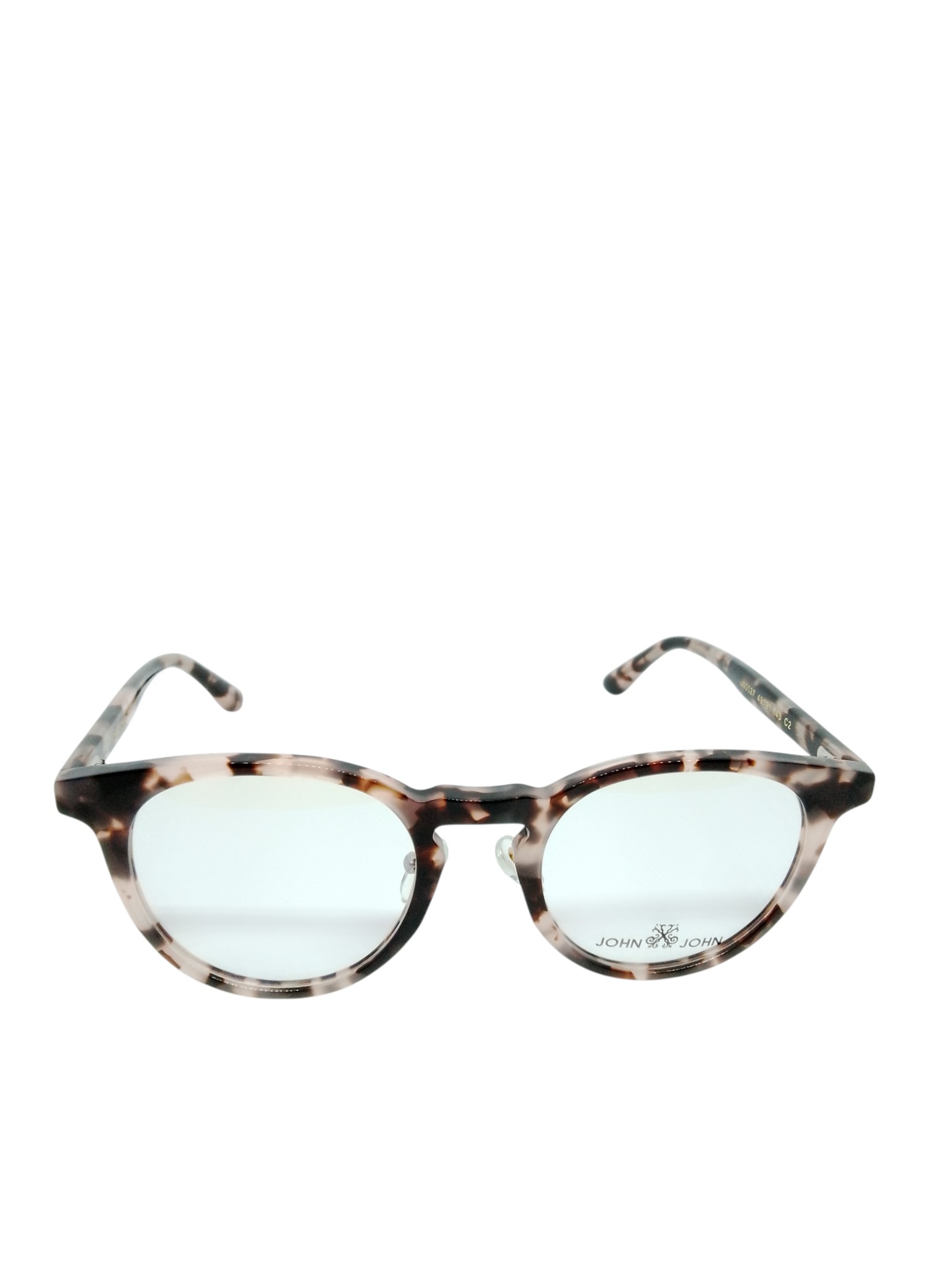 ÓCULOS DE GRAU JOHN JOHN JN0027 C2 49–21–143 – ESTILO UNISSEX EM ACETATO CLARO COM PADRÃO HAVANA CLARO