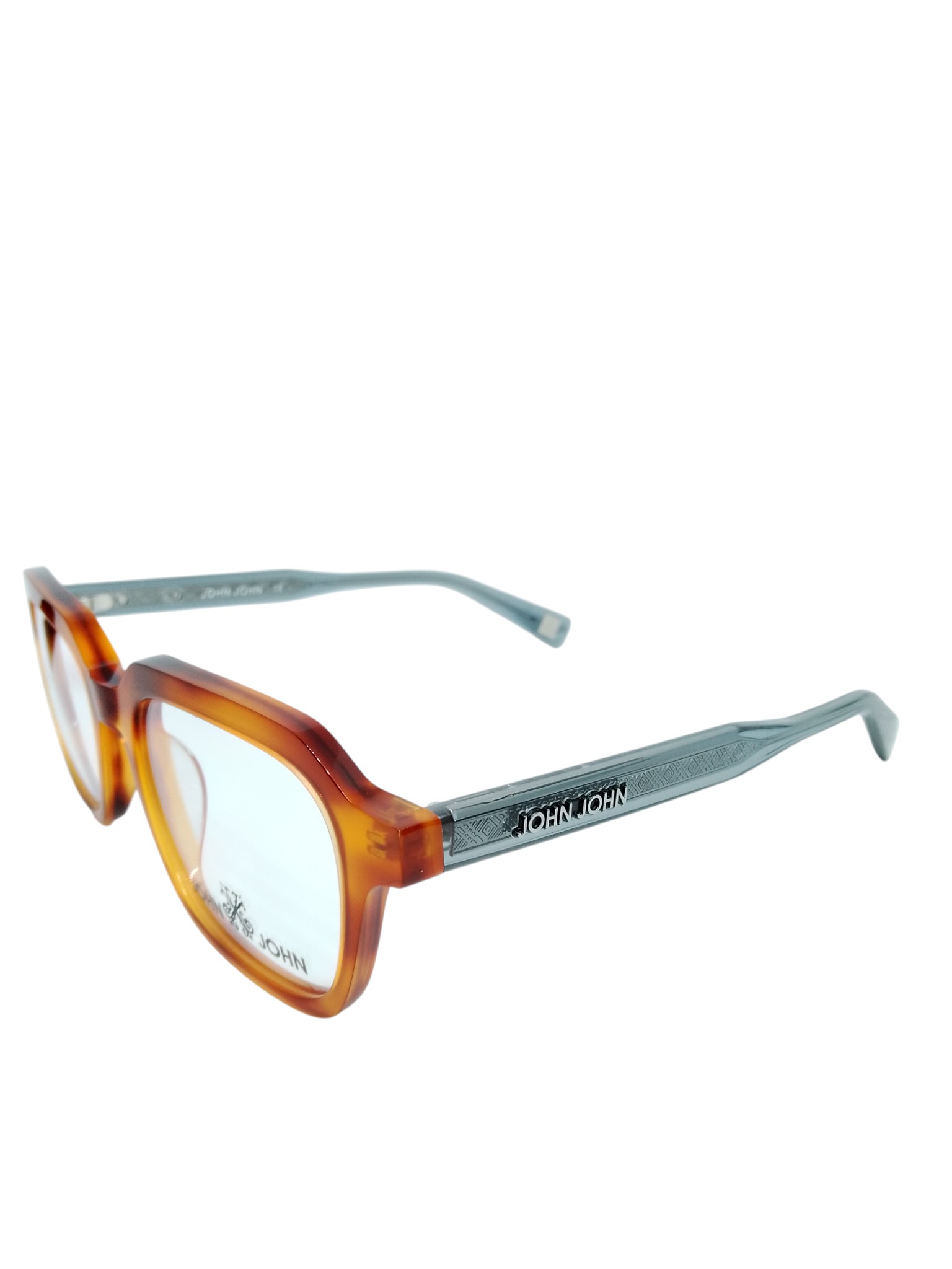 O John John JN0035 C4 é um modelo unissex que combina o charme do retrô com a atitude urbana da marca. Sua armação é confeccionada em acetato bicolor, com frente em âmbar translúcido (tom mel) e hastes em cinza acetinado, criando um contraste moderno e sofisticado. O formato retangular suavizado oferece equilíbrio entre personalidade e elegância, tornando-o versátil para diversos formatos de rosto. As hastes contam com detalhe metálico com o logotipo John John, garantindo acabamento refinado e contemporâneo.