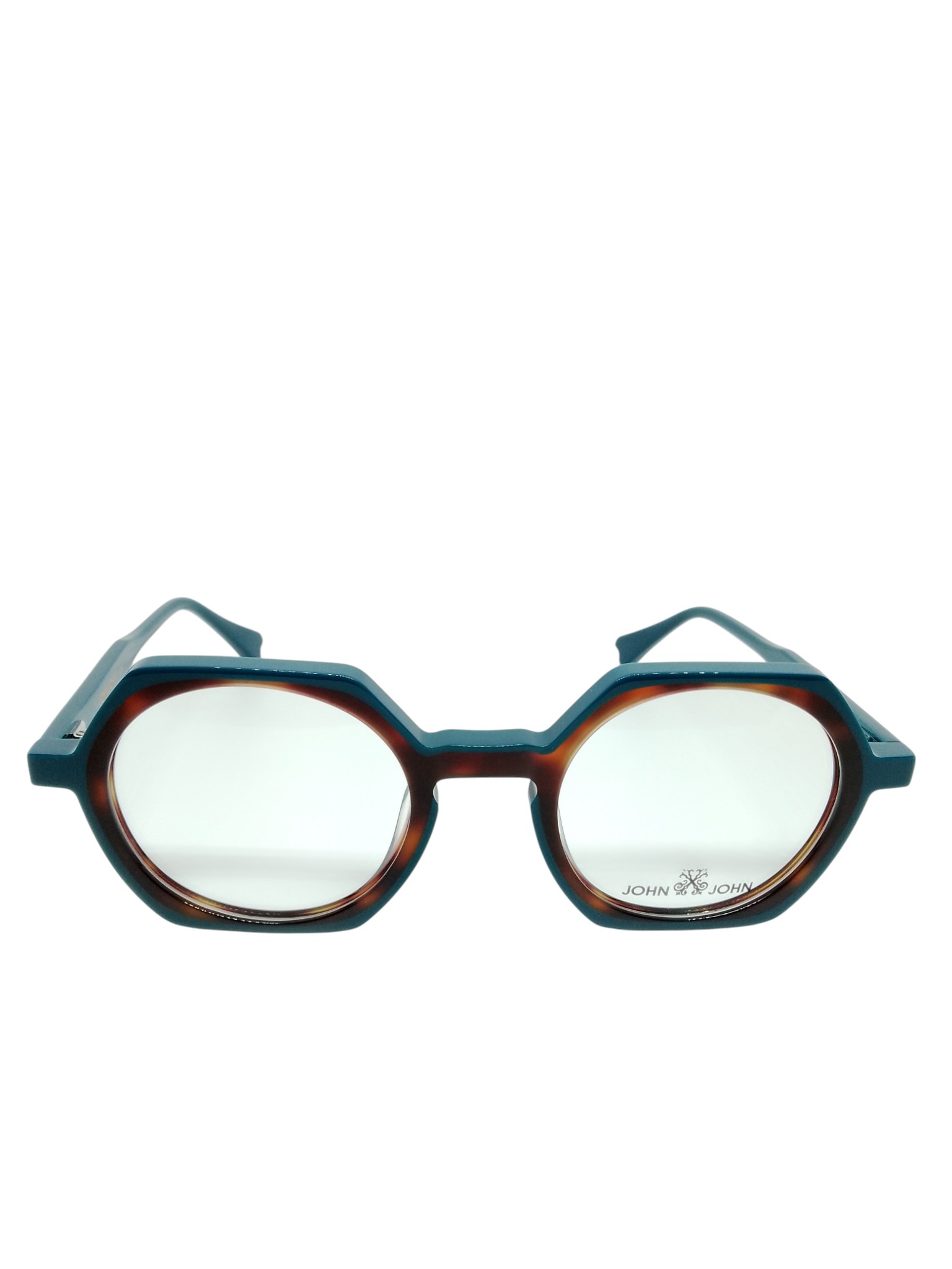 O modelo John John JN0049 C2 apresenta um design autêntico e moderno, combinando estilo e personalidade. Sua armação é produzida em acetato bicolor, com a parte externa em verde petróleo e o interior em marrom havana, criando um contraste sofisticado e marcante.