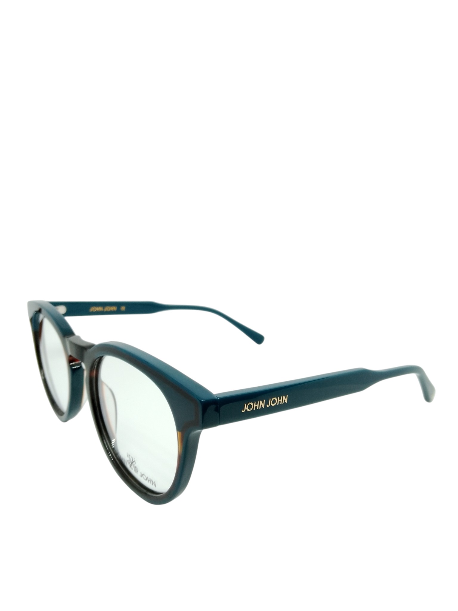 O modelo John John JN0051 C3 traz um design clássico repaginado com o estilo contemporâneo da marca. Produzido em acetato azul escuro brilhante, o modelo apresenta um leve efeito translúcido na parte inferior da armação, proporcionando profundidade e sofisticação.