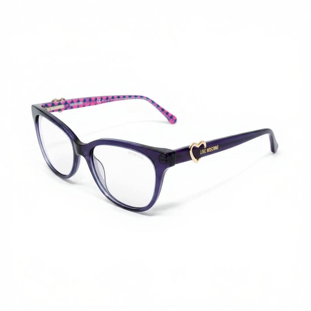 Love Moschino MOL609 HKZ 52‑17‑140 – armação borboleta em acetato Violet Havana, oferecendo estilo e conforto para o seu dia a dia.