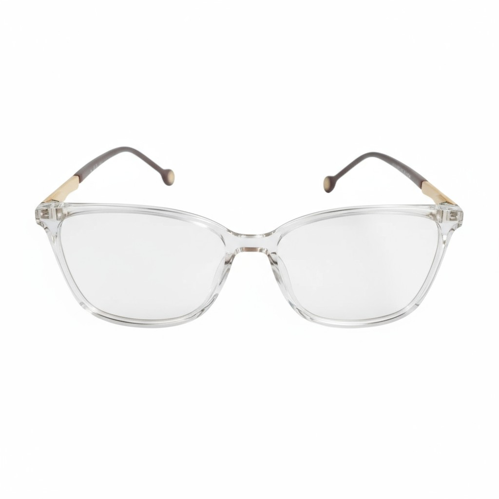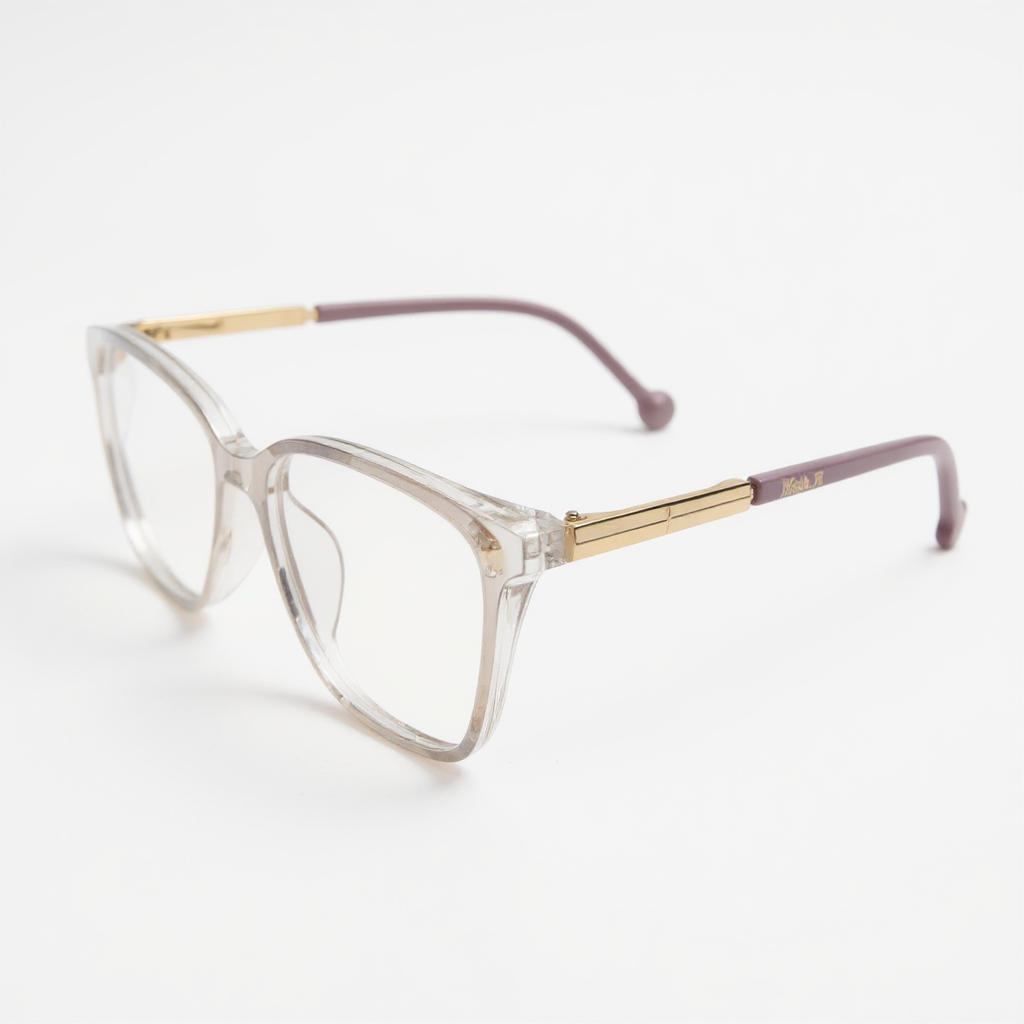 O modelo Math.B 68312 C7 é uma peça elegante e moderna que une leveza, sofisticação e design contemporâneo. Sua frente em acetato cristal translúcido proporciona um visual limpo e versátil, enquanto as hastes metálicas douradas com ponteiras em tom vinho trazem um toque refinado e feminino.