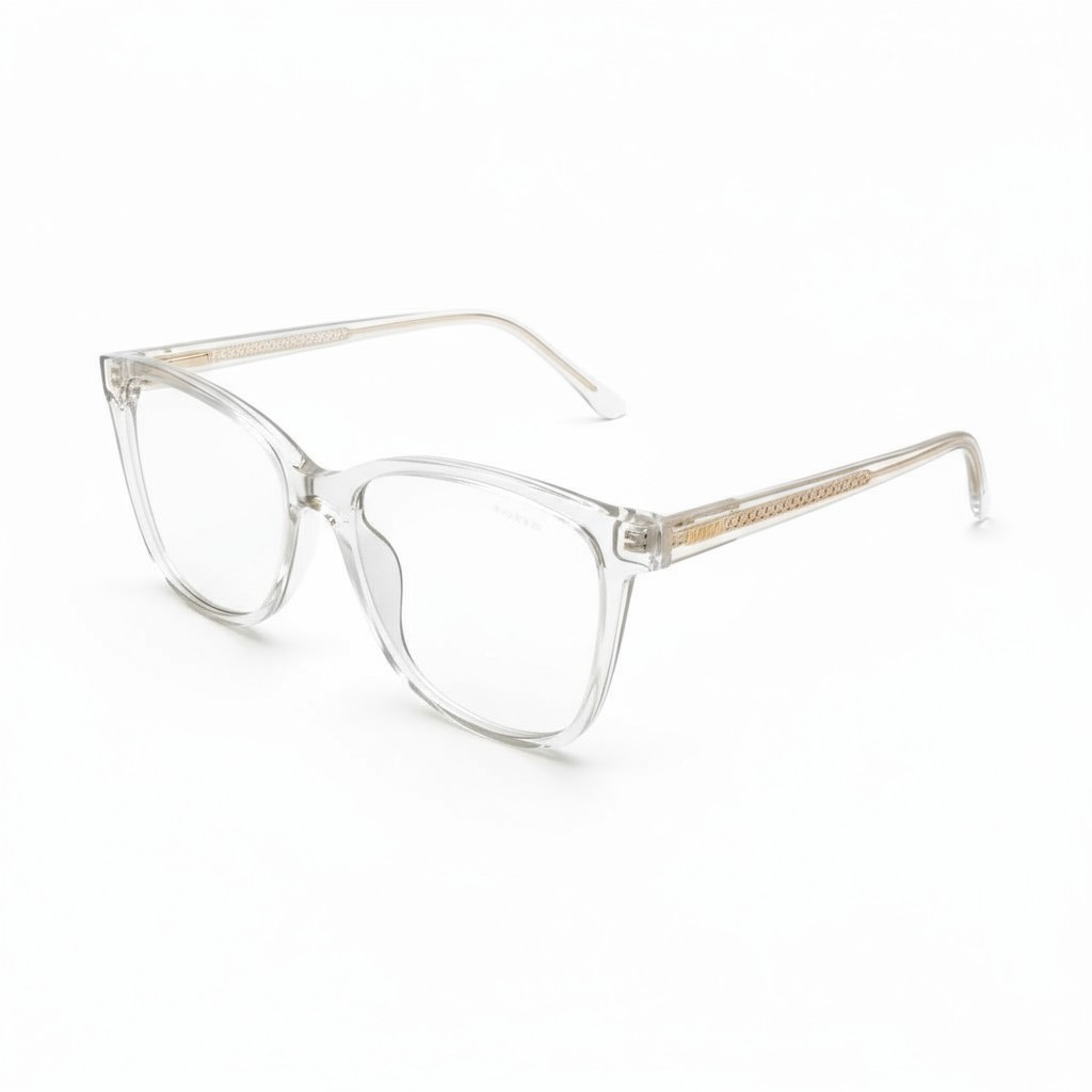 O modelo Math.B 68669 C3 é uma combinação perfeita entre sofisticação e leveza. Sua estrutura é feita em nylon transparente, material que garante resistência, flexibilidade e um visual moderno. O design clean é realçado pelos detalhes metálicos dourados nas hastes, que adicionam elegância e personalidade à peça.