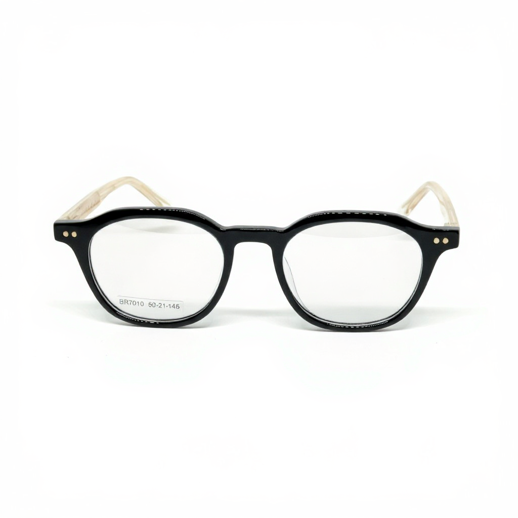 O modelo Math.B BR7010 C1 une o estilo retrô e a elegância contemporânea em uma armação charmosa e confortável. Com frente em acetato preto brilhante e hastes transparentes em tom cristal, o contraste traz leveza e sofisticação.