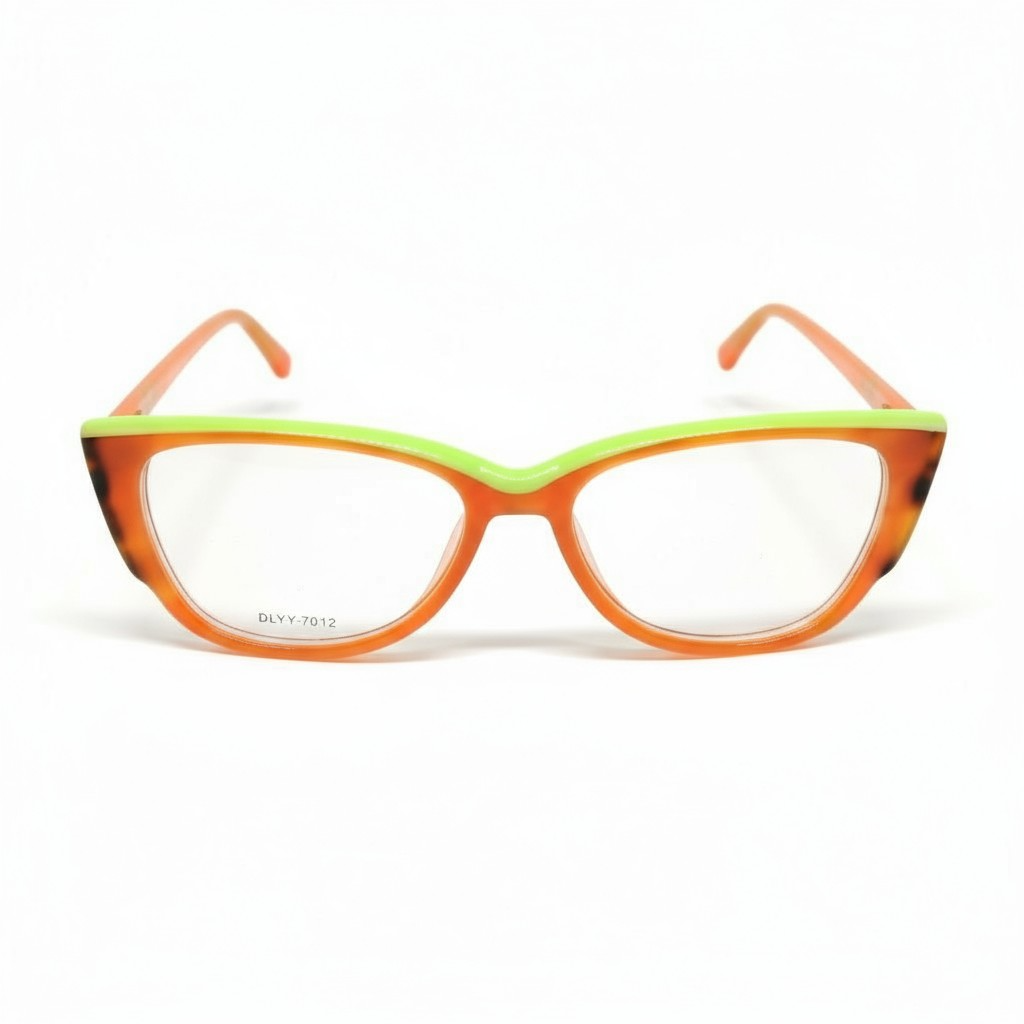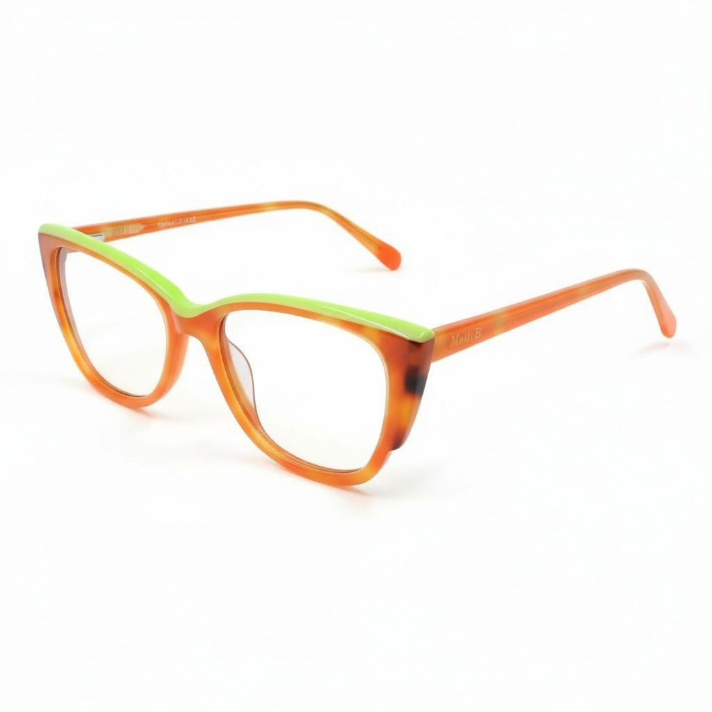 O modelo Math.B DLYY 7012 C4 é vibrante, moderno e cheio de personalidade. A combinação de acetato havana com acabamento em laranja translúcido e detalhe verde limão na parte superior cria um contraste único, ideal para quem gosta de ousar com elegância.