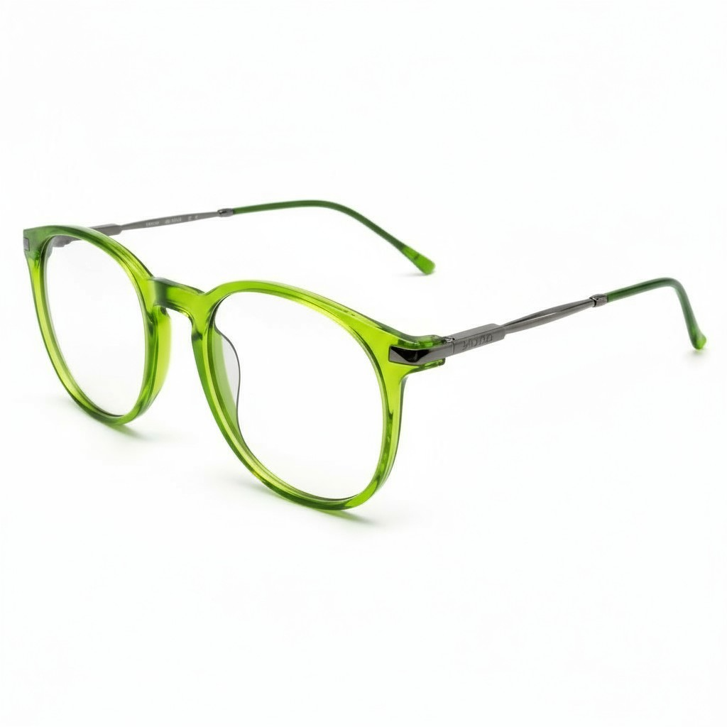 O modelo Math.B DLYY TR3003 C8 une leveza, modernidade e personalidade em uma única armação. Com frente redonda em acetato verde translúcido e hastes metálicas em tom grafite, o design equilibra sofisticação e atitude em um visual contemporâneo.