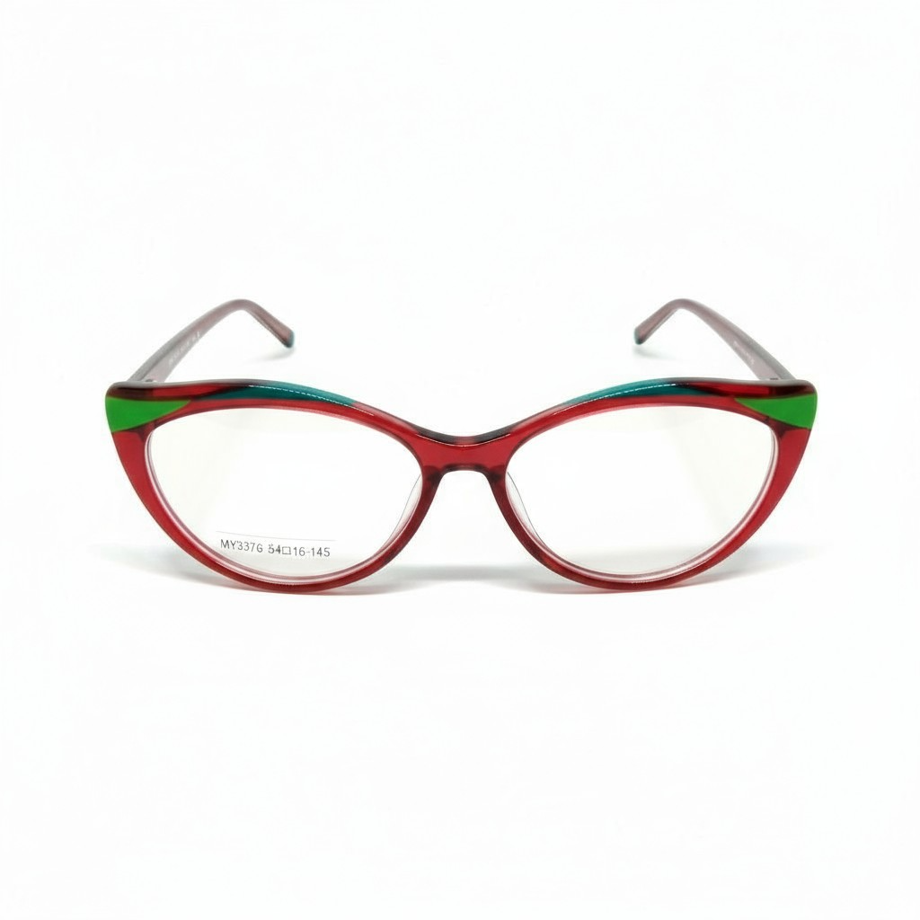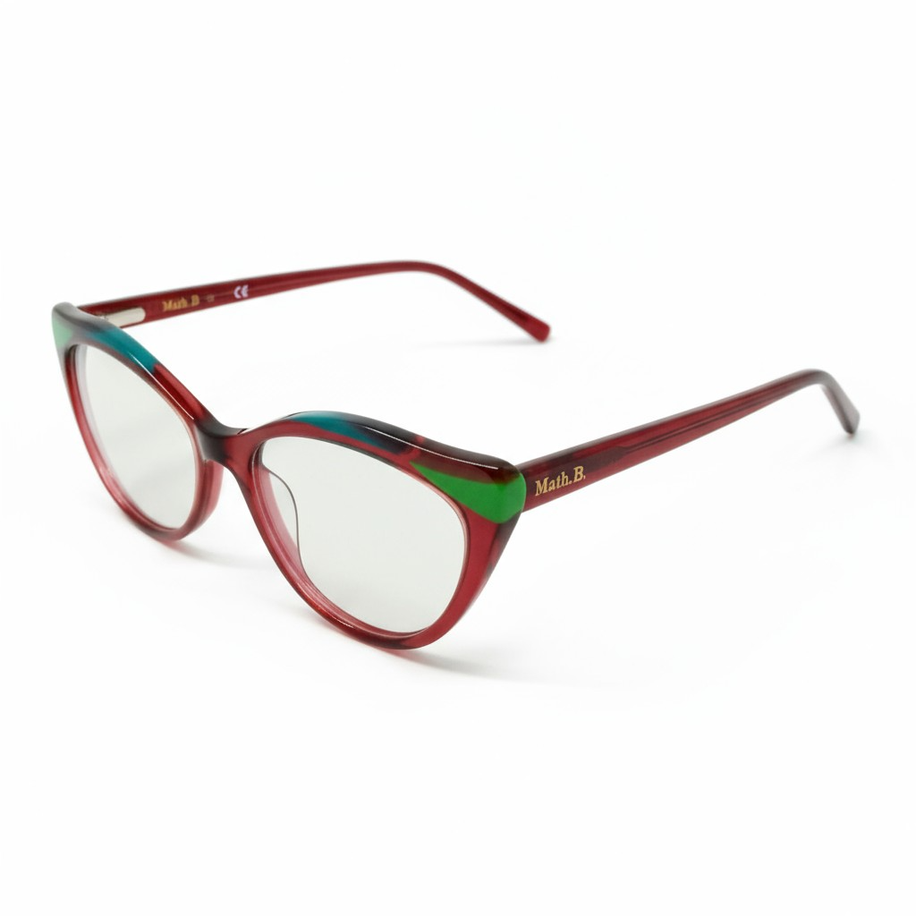 O modelo Math.B MY3376 C4 é pura ousadia e charme em um design único e expressivo. Sua armação em acetato vermelho translúcido é complementada por detalhes em verde e azul na parte superior, criando um visual moderno, artístico e cheio de atitude.