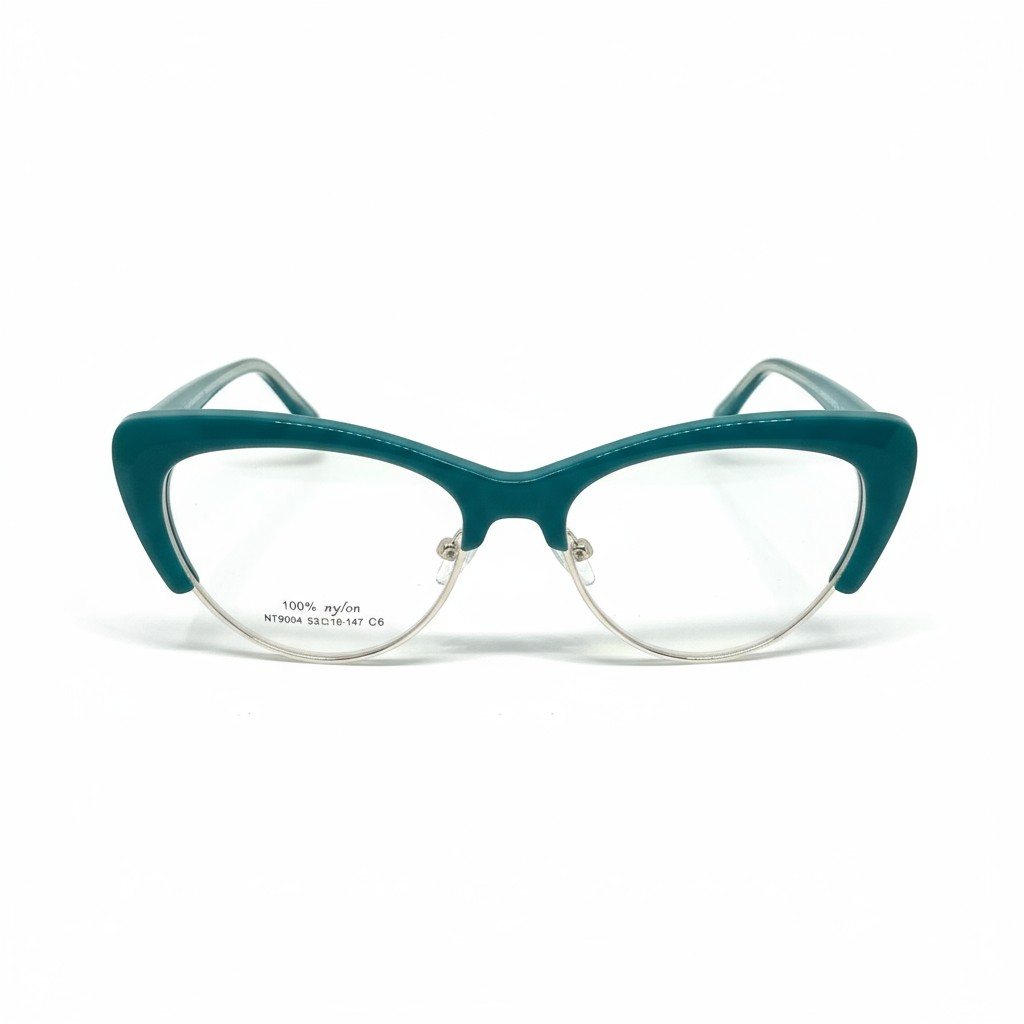 ÓCULOS DE GRAU MATH.B NT9054 C6 53-18-147 – VERDE PETRÓLEO GATINHO COM ARO INFERIOR DOURADO