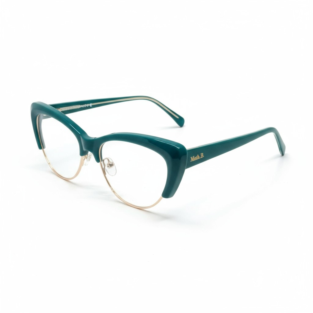 O modelo Math.B NT9054 C6 entrega personalidade, elegância e um visual marcante. Sua frente em acetato verde petróleo brilhante traz sofisticação e um toque moderno, perfeito para quem gosta de armações cheias de estilo.
