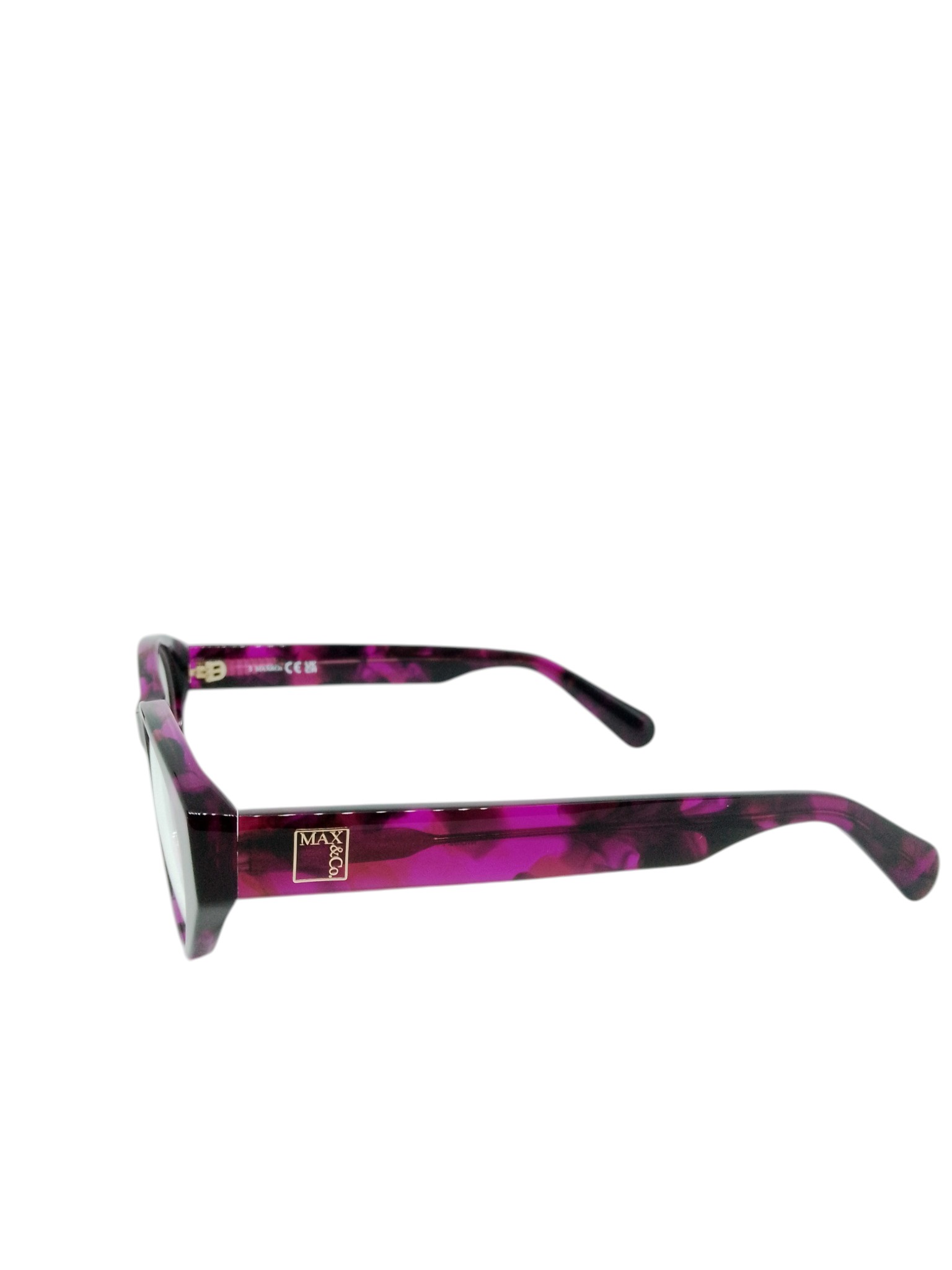 Os detalhes da marca nas hastes reforçam o acabamento premium e a identidade fashion da Max&Co.