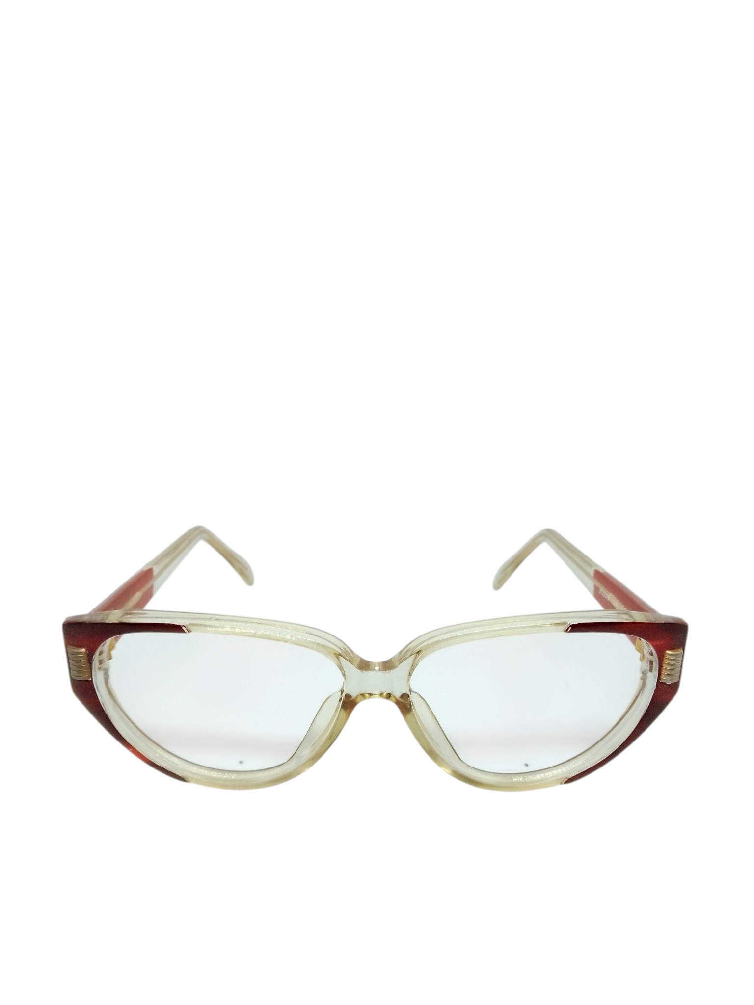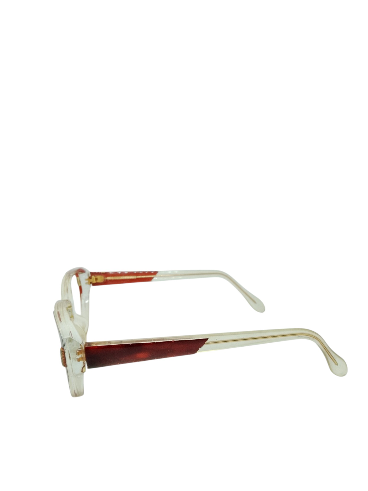 A armação em acetato com combinação de tons translúcido e vinho cria um contraste elegante e sofisticado. Seu formato gatinho (cat eye) traz uma forte inspiração vintage, valorizando o olhar e adicionando charme ao visual.