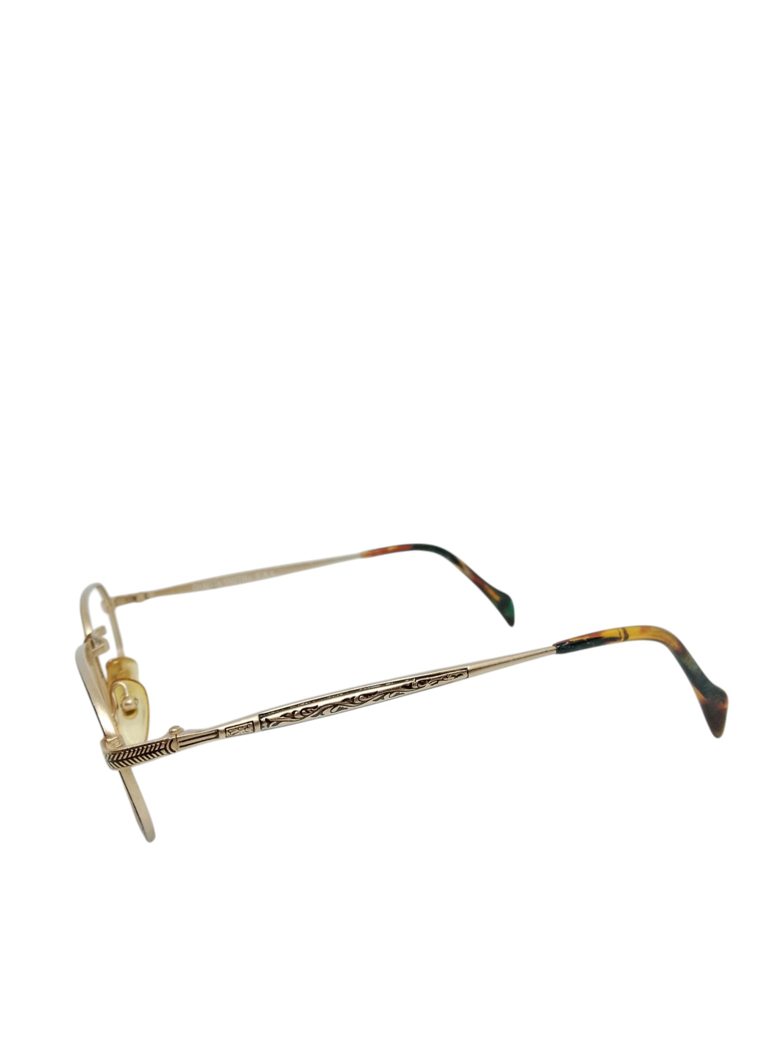 A estrutura metálica em dourado ganha ainda mais destaque com o aro em padrão tartaruga (tortoise), criando um contraste elegante e cheio de charme. As hastes com detalhes trabalhados elevam o nível do modelo, entregando um acabamento diferenciado e refinado.