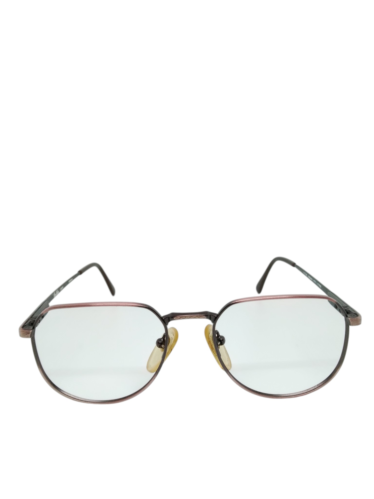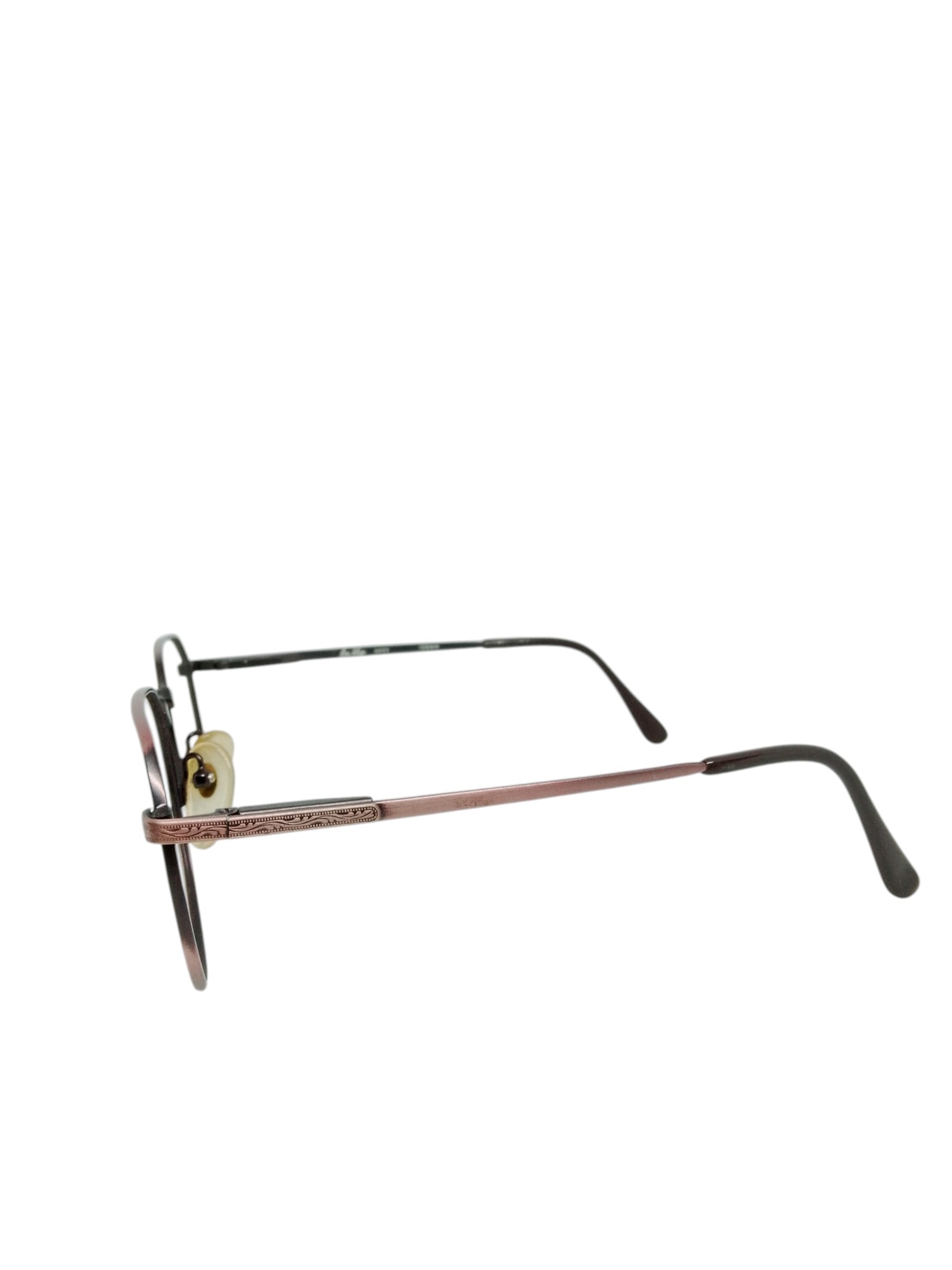 A armação em metal apresenta um acabamento em tom grafite com detalhes em rosé, criando um contraste refinado e contemporâneo. As hastes finas com acabamento trabalhado agregam valor ao design, enquanto as ponteiras escuras garantem um toque discreto e elegante.