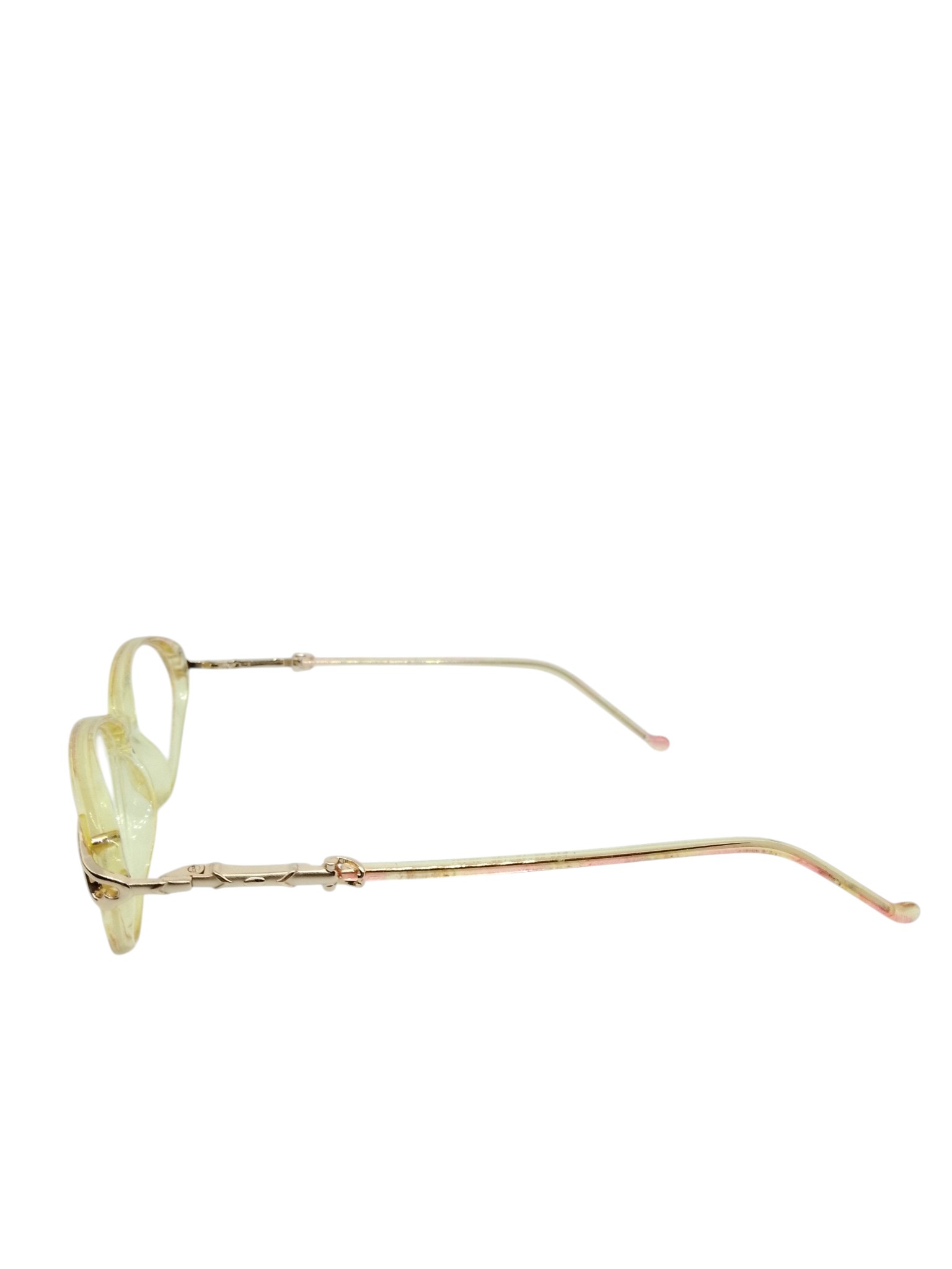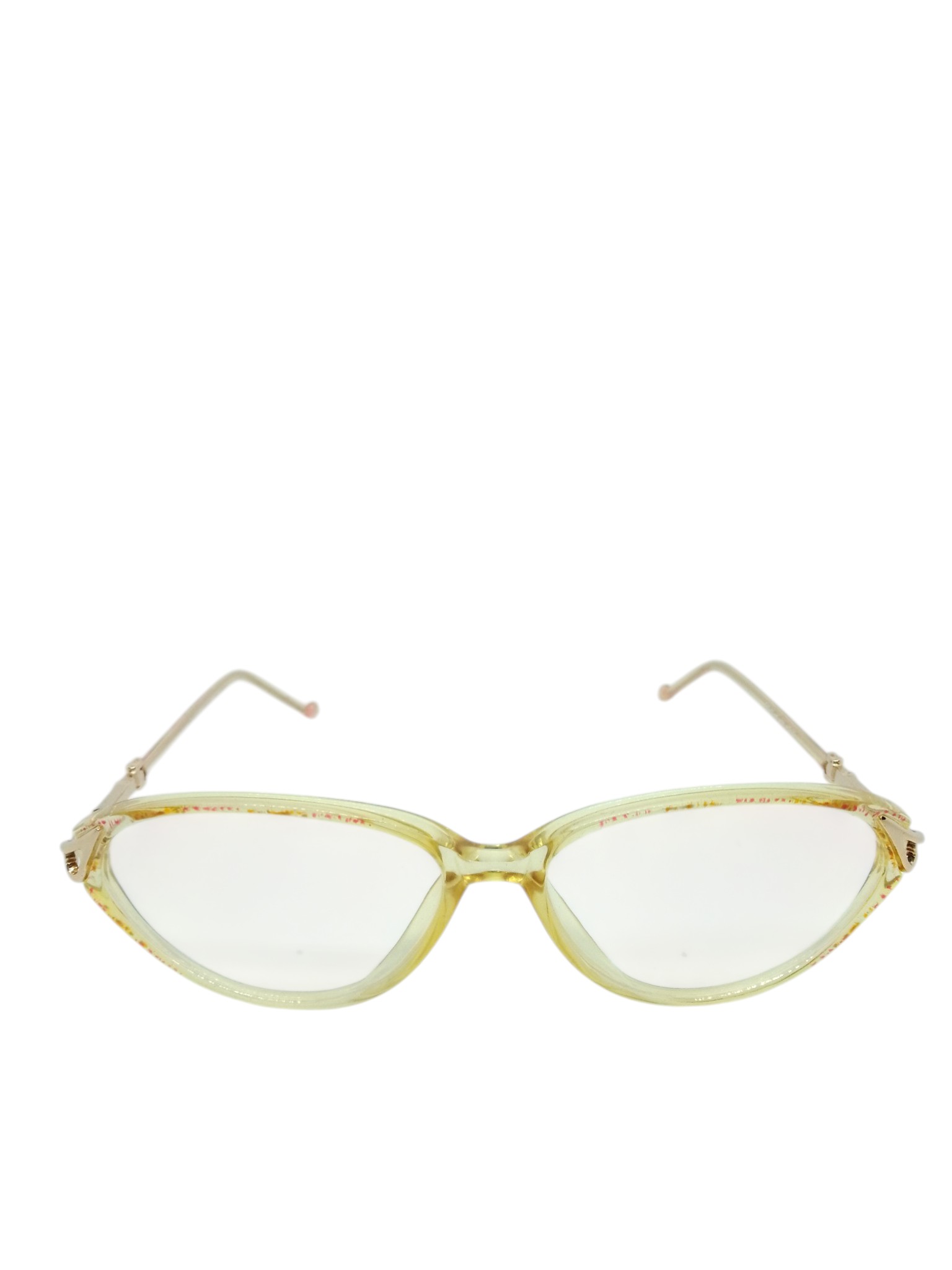 A armação em acetato translúcido em tom amarelo suave traz leveza e charme ao visual, enquanto o formato levemente gatinho valoriza o olhar e destaca a expressão com sutileza. As hastes finas metálicas complementam o design com um toque refinado e contemporâneo.