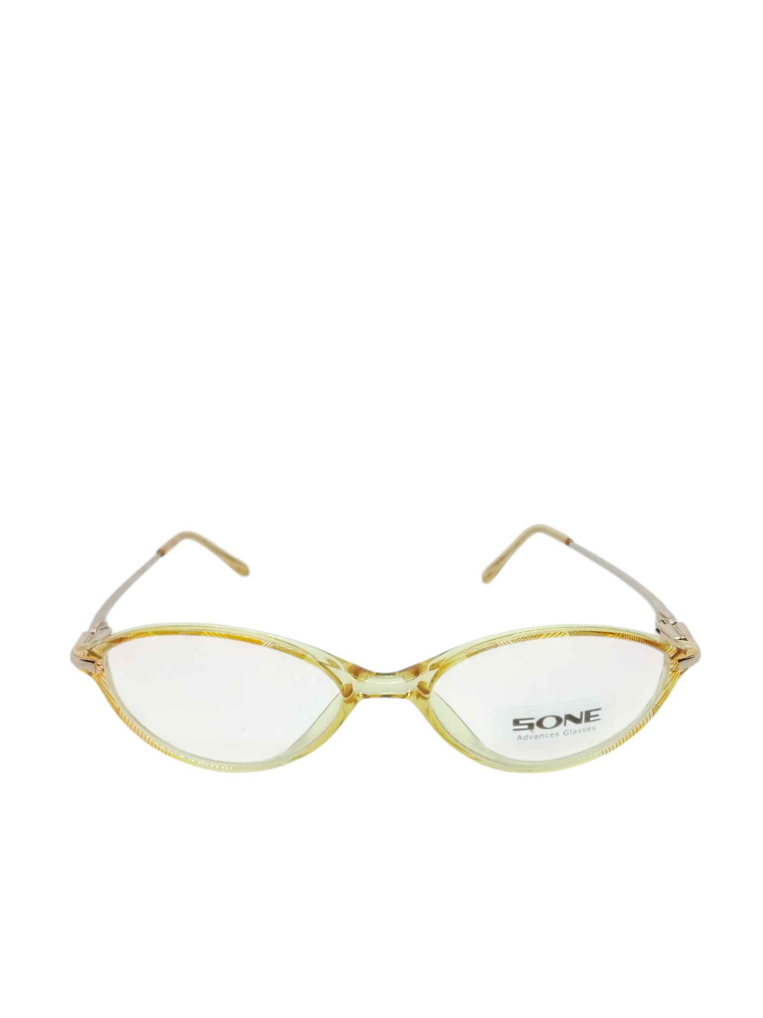 A armação em acetato translúcido em tom amarelo suave traz leveza e um toque fashion ao visual. Seu formato gatinho estreito valoriza o olhar, proporcionando um estilo marcante e sofisticado.