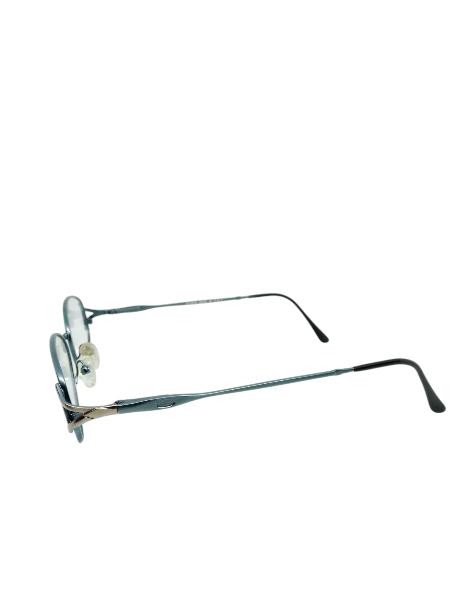 A armação em metal em tom grafite/esverdeado traz um visual moderno e discreto, enquanto o formato oval clássico reforça o estilo vintage com sutileza. Seu design fino proporciona um encaixe leve e confortável, perfeito para uso prolongado.