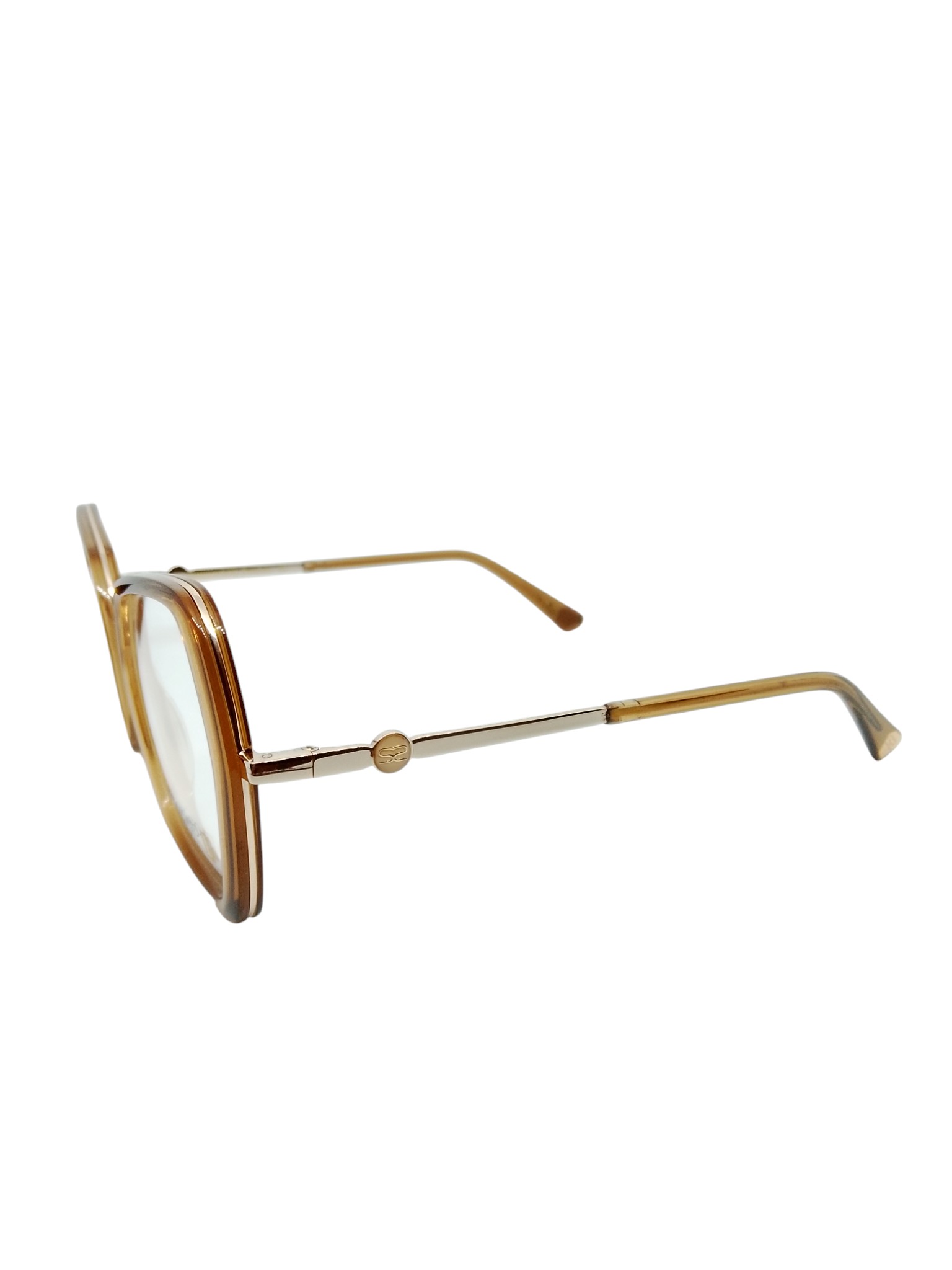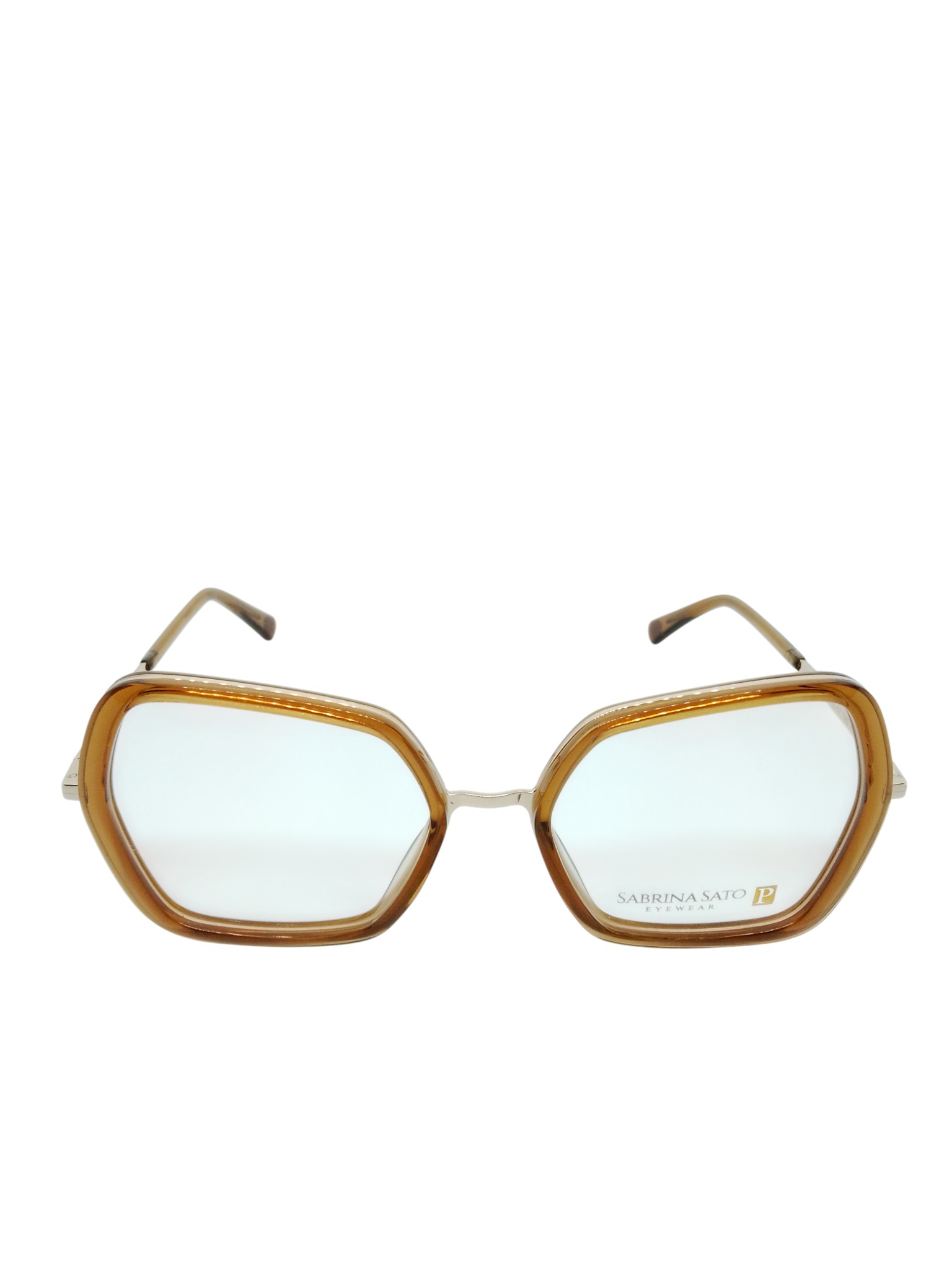 ÓCULOS DE GRAU SABRINA SATO SS8002 C3 52-17-140 – GEOMÉTRICO DOURADO COM ACETATO ÂMBAR TRANSLÚCIDO