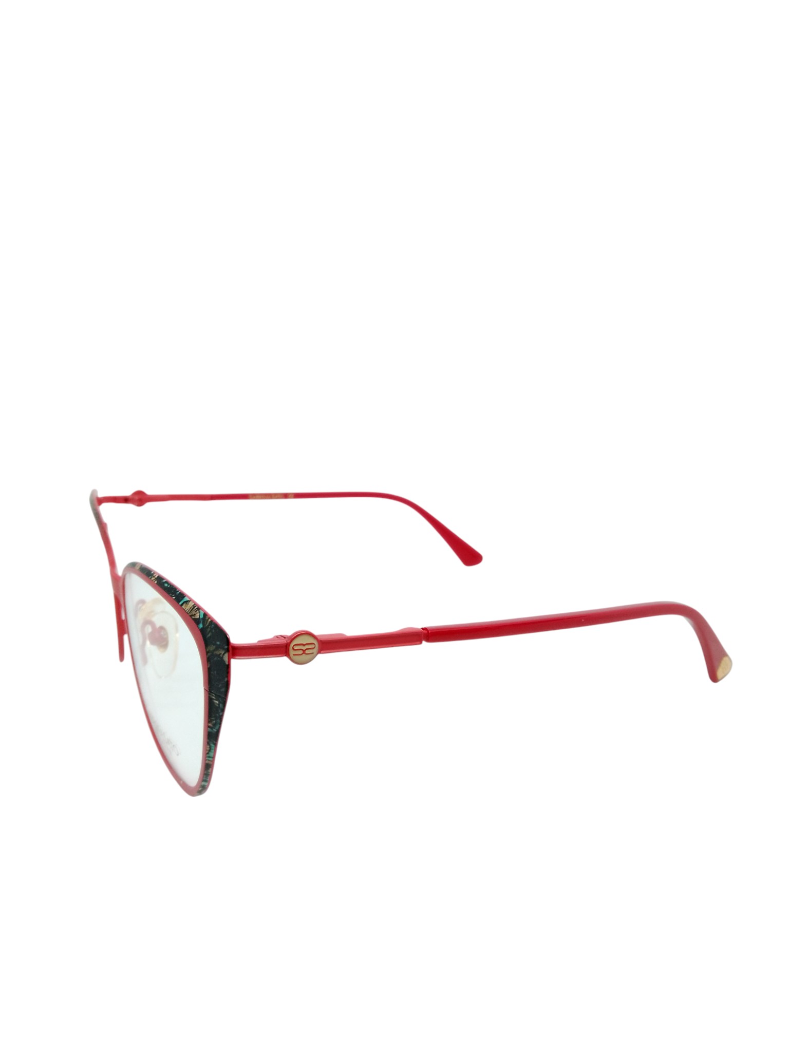 O Sabrina Sato SS8010 C1 é um modelo cheio de personalidade, misturando modernidade e um toque artístico. Sua frente metálica em vermelho vibrante traz um formato gatinho suave e marcante, enquanto a parte superior apresenta uma estampa multicolorida elegante, que destaca o olhar com estilo único. As hastes finas em metal vermelho mantêm o visual leve, confortável e sofisticado.