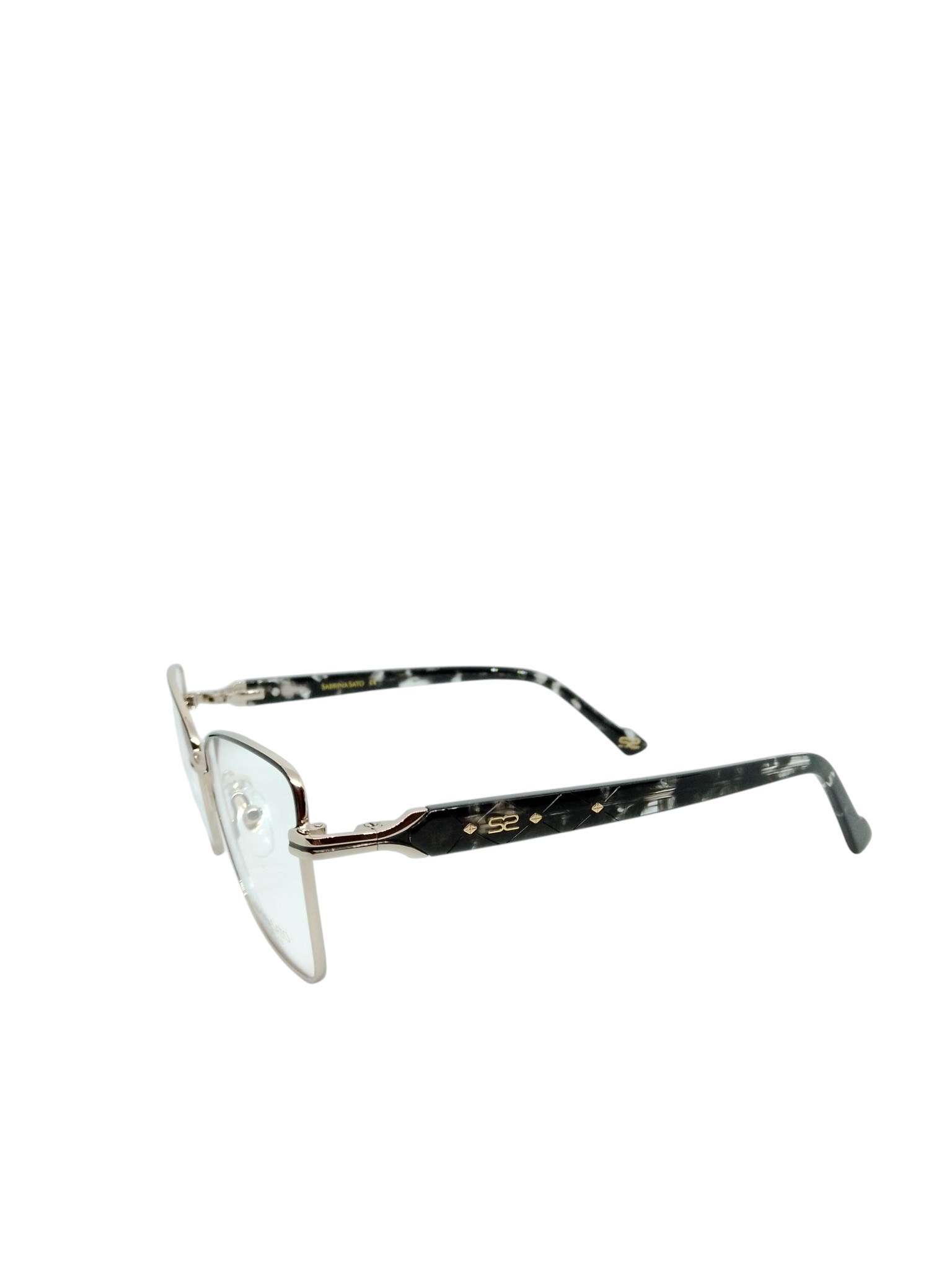 O Sabrina Sato SS971 C1 é a união perfeita entre leveza, elegância e modernidade. Sua frente em metal dourado possui um formato levemente gatinho com linhas suaves e sofisticadas, criando um visual delicado e extremamente feminino. As hastes, em acetato marmorizado preto e branco, trazem textura premium e o aplique dourado SS, reforçando o estilo de grife inconfundível da coleção.