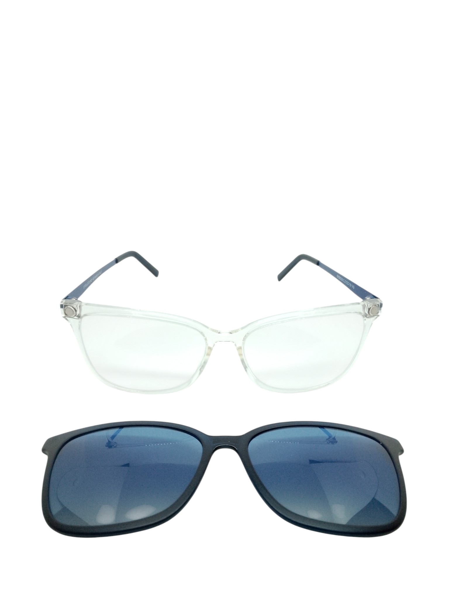 ÓCULOS DE GRAU SPELLBOUND 08SB056 C2 53–18–145 – ACETATO TRANSPARENTE COM HASTE METÁLICA AZUL E CLIP-ON SOLAR