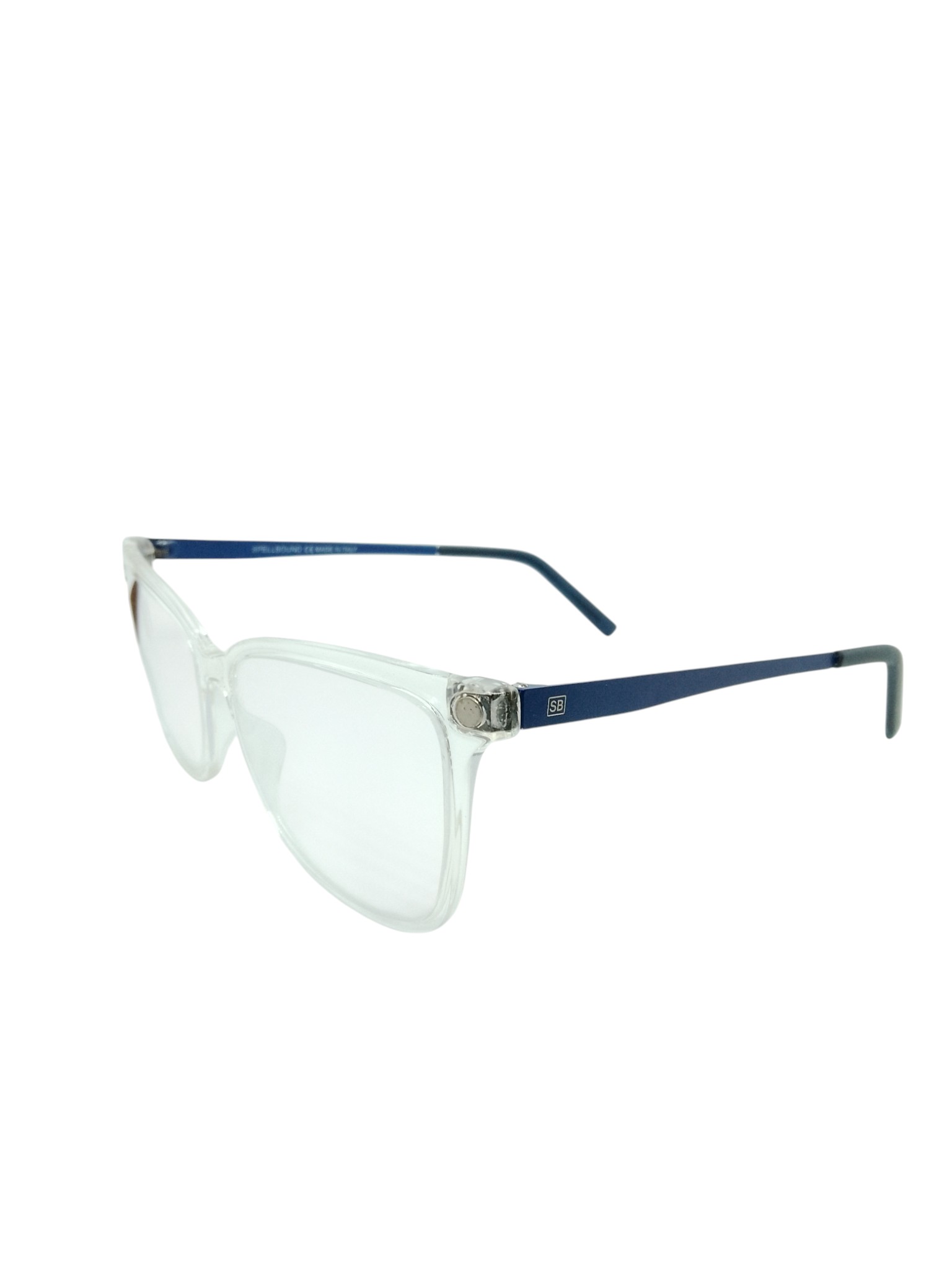 O modelo Spellbound 08SB056 C2 une elegância e funcionalidade em um design leve e moderno. Sua estrutura frontal em acetato transparente garante um visual sofisticado e contemporâneo, enquanto as hastes metálicas em azul fosco proporcionam resistência e conforto.