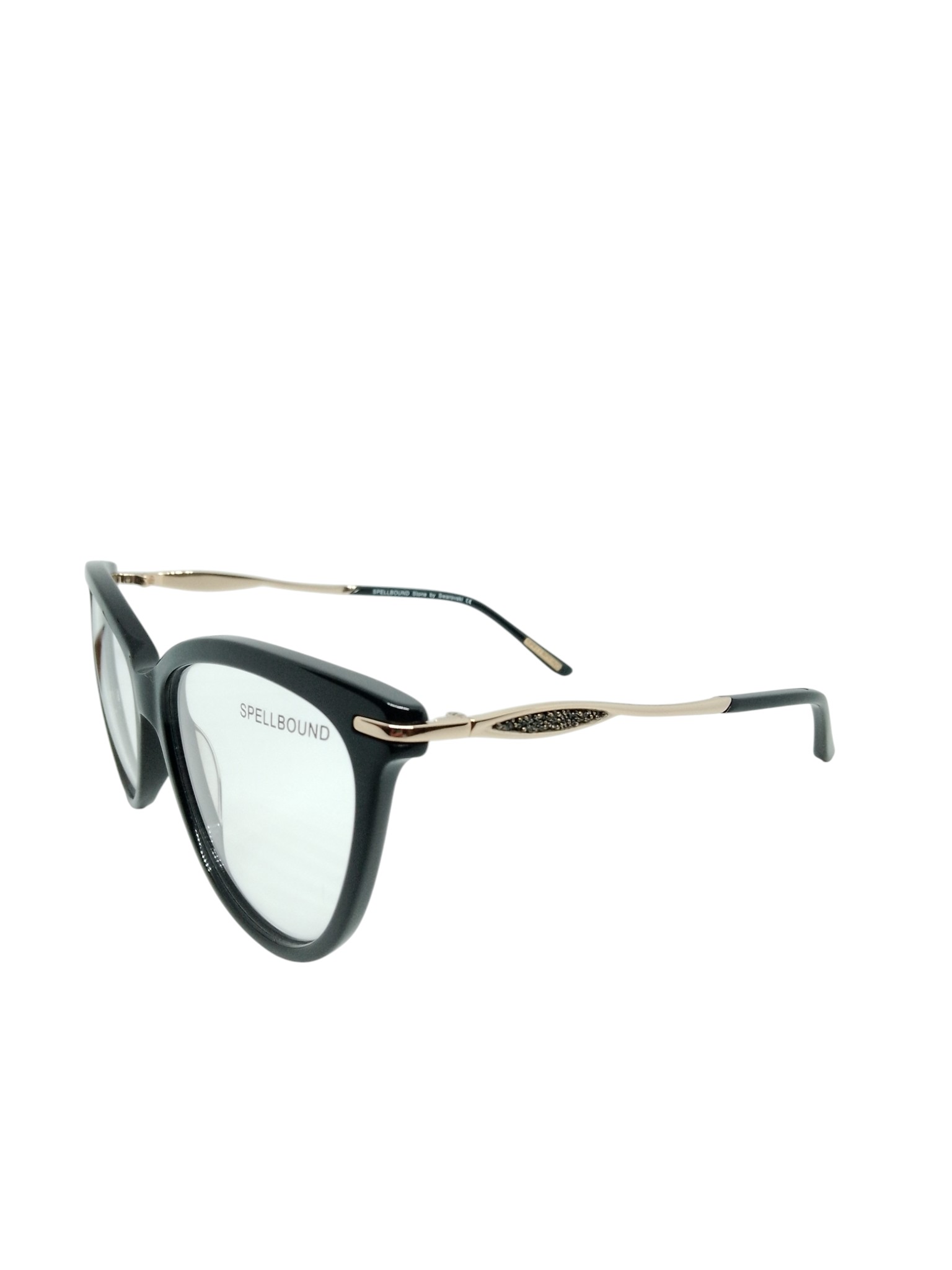 ÓCULOS DE GRAU SPELLBOUND SB5051 C1 57–17–135 – PRETO COM HASTES DOURADAS E DETALHE EM PEDRARIA