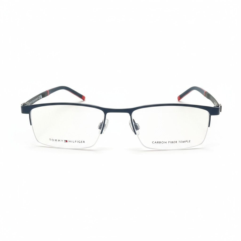 ÓCULOS DE GRAU TOMMY HILFIGER TH 2079 FLL 145 – DESIGN RETANGULAR EM METAL AZUL COM DETALHES EM FIBRA DE CARBONO