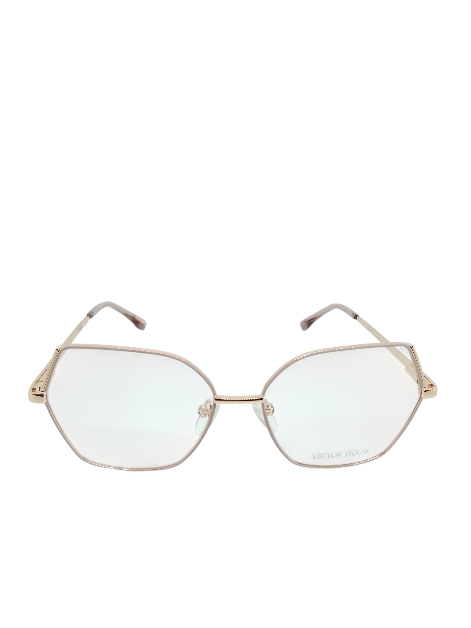 O Victor Hugo VH1339 COL.0H33 combina sofisticação moderna com um design geométrico único. Sua frente metálica dourada em formato hexagonal oferece leveza e estilo, trazendo um visual elegante e diferenciado. As hastes finas em metal dourado, com detalhe lateral em tom rosado, reforçam o acabamento premium característico da marca. Um modelo perfeito para quem busca um óculos marcante, delicado e cheio de personalidade.