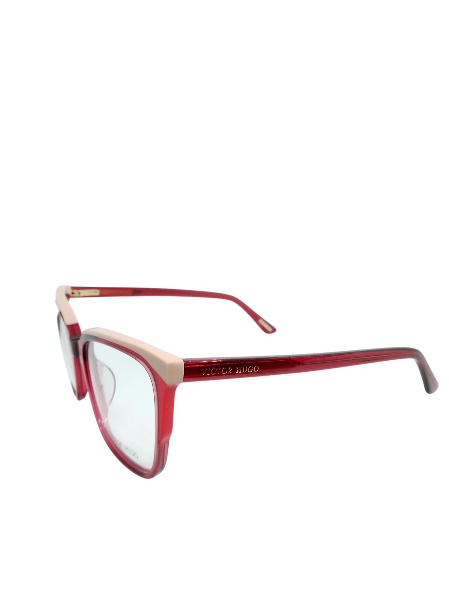 O Victor Hugo VH1887 COL.06NL é a combinação perfeita entre elegância feminina e design moderno. Sua frente em acetato vermelho translúcido, com detalhe superior em tom rosé suave, cria um contraste sofisticado que ilumina o rosto e adiciona personalidade ao visual. O formato retangular suavizado oferece equilíbrio e estilo, valorizando diferentes formatos de rosto. As hastes em vermelho translúcido, com logo Victor Hugo dourado, completam o design com um toque de luxo sutil.