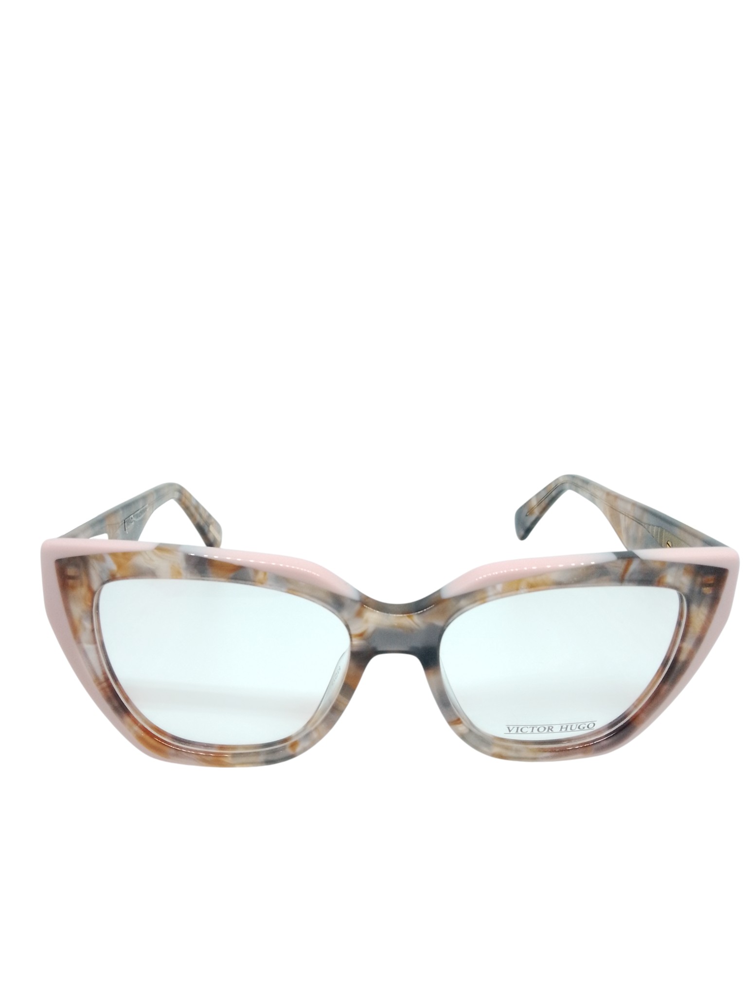 O Victor Hugo VH1939 COL.01GQ é a combinação perfeita entre design marcante e feminilidade moderna. Sua frente em acetato marmorizado em tons de marfim, marrom suave e cinza, com detalhe superior em rosa pastel, cria um visual único, sofisticado e cheio de charme.