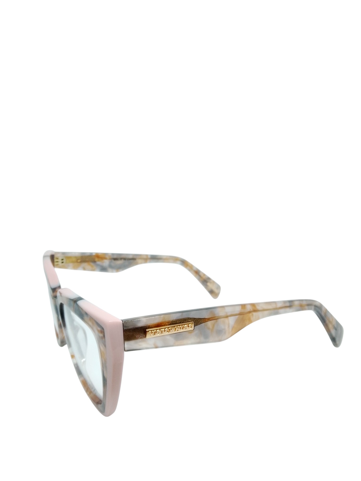 O formato gatinho estruturado destaca o olhar e valoriza o rosto, trazendo aquele toque de presença que só a Victor Hugo oferece. As hastes seguem o mesmo padrão marmorizado elegante e contam com plaquinha dourada da marca, reforçando o acabamento de grife.