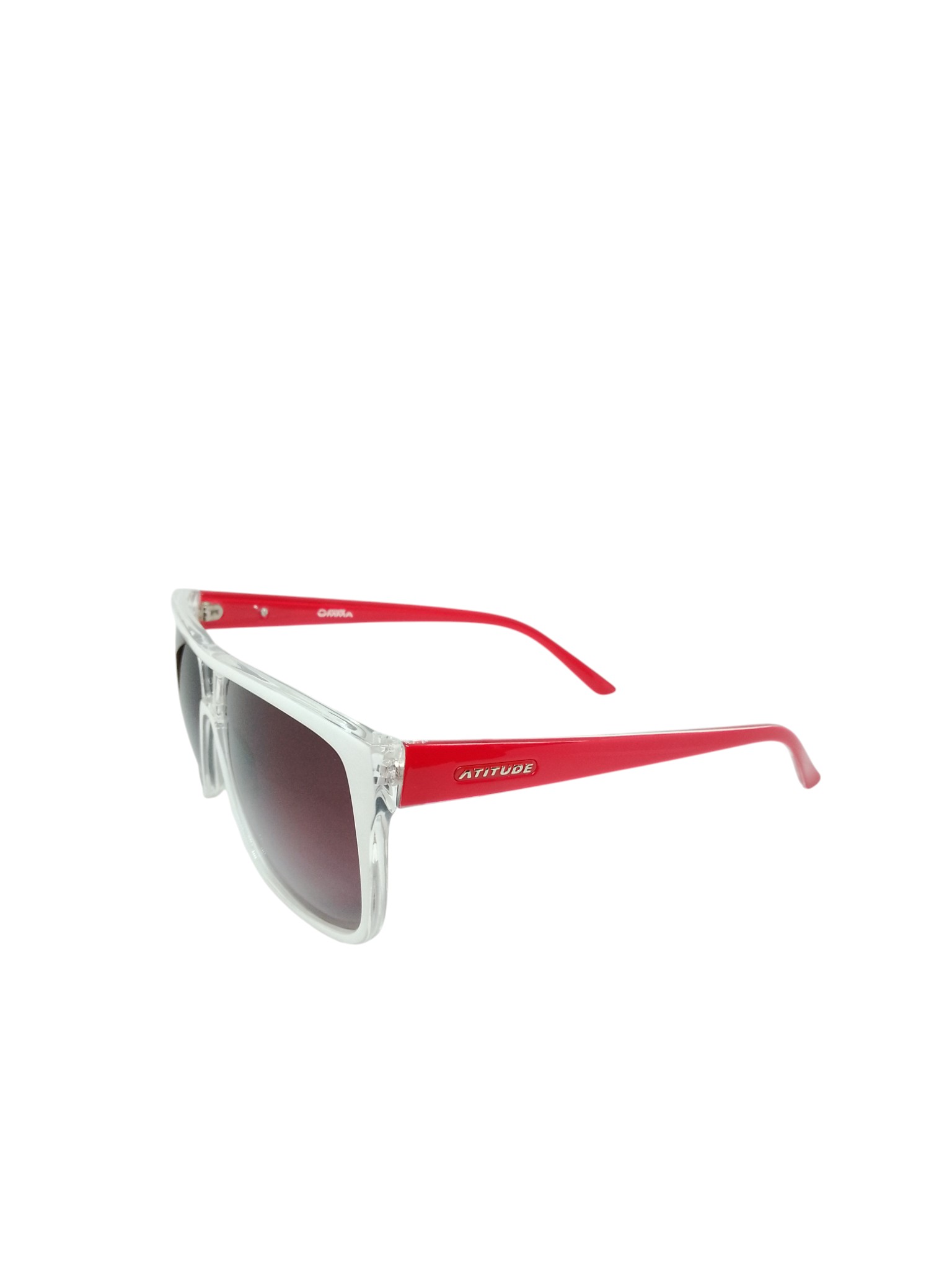 Óculos de sol com design moderno e esportivo, ideal para quem busca estilo, conforto e proteção no dia a dia. A armação em material leve com acabamento translúcido e hastes vermelhas traz um visual marcante e atual, enquanto as lentes escuras garantem excelente proteção contra a luminosidade.