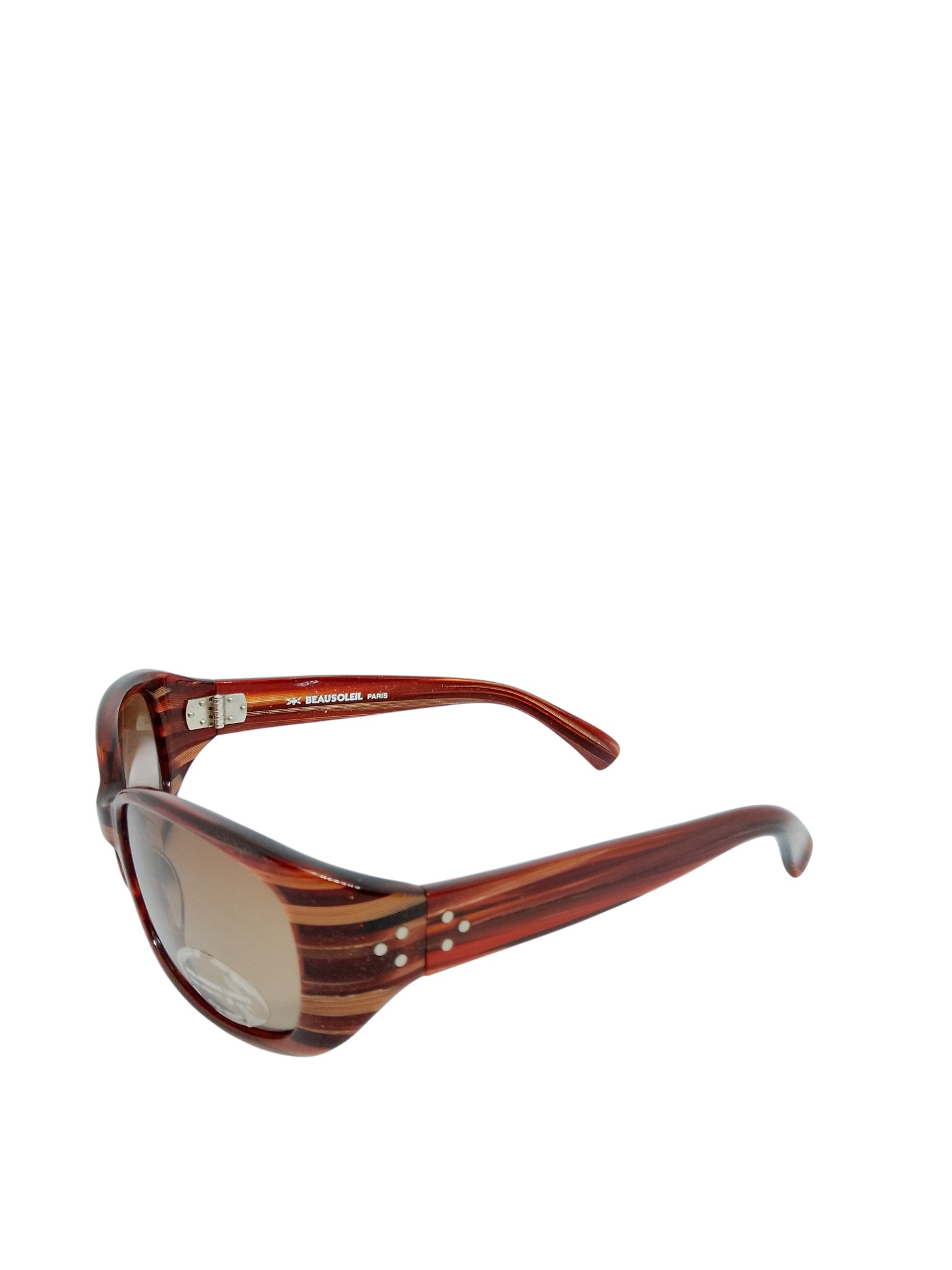 ✔ Detalhes metálicos discretos nas hastes e assinatura Beausoleil Paris
