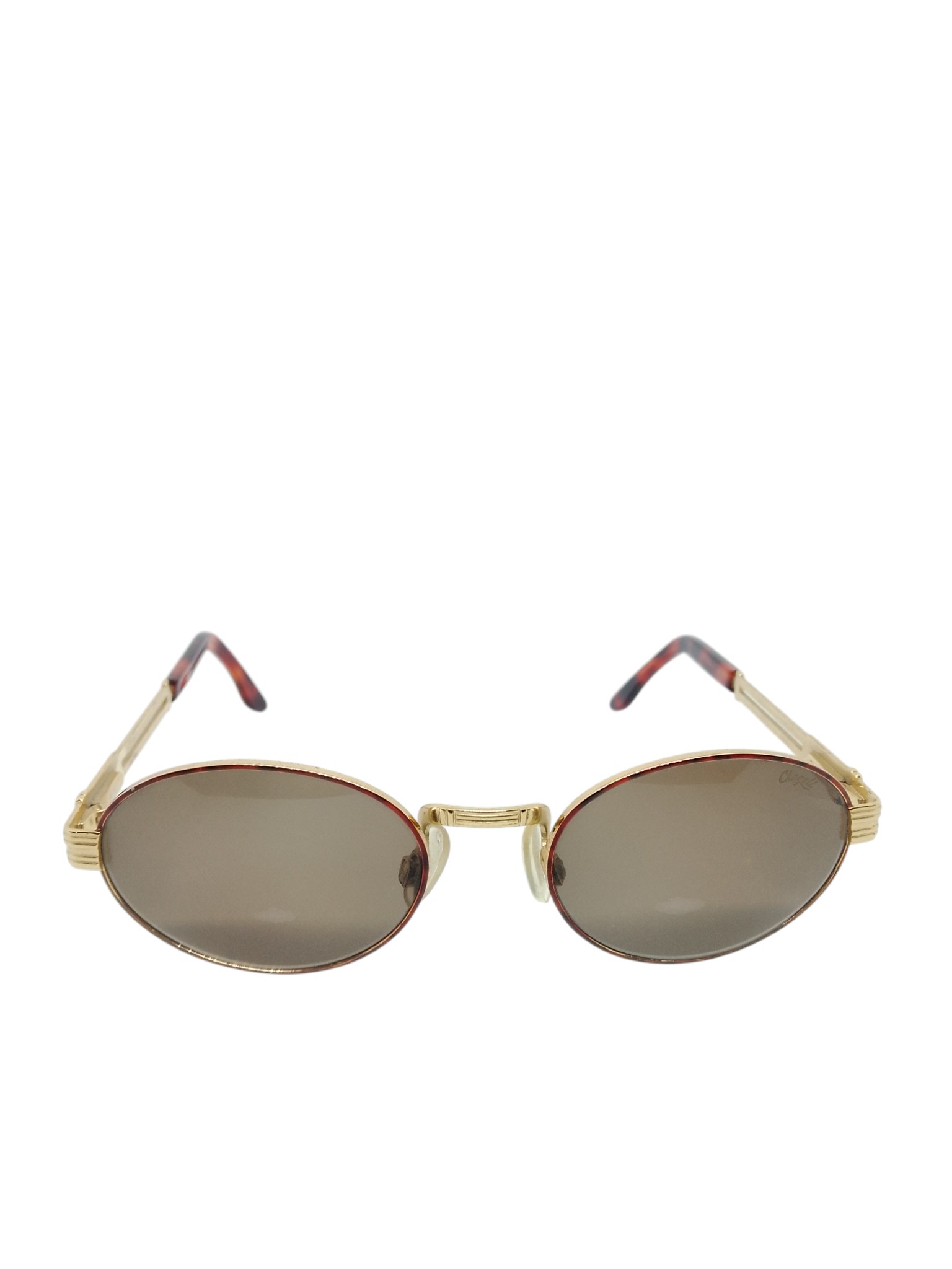 O modelo Chagall LL3514F é uma peça de estética vintage luxuosa, inspirada nos clássicos europeus dos anos 80 e 90, com forte presença de elementos metálicos e design autoral. Sua frente apresenta lentes ovais em tom cinza sólido, envolvidas por uma armação em metal dourado polido, que transmite sofisticação imediata e um visual elegante de alto padrão.