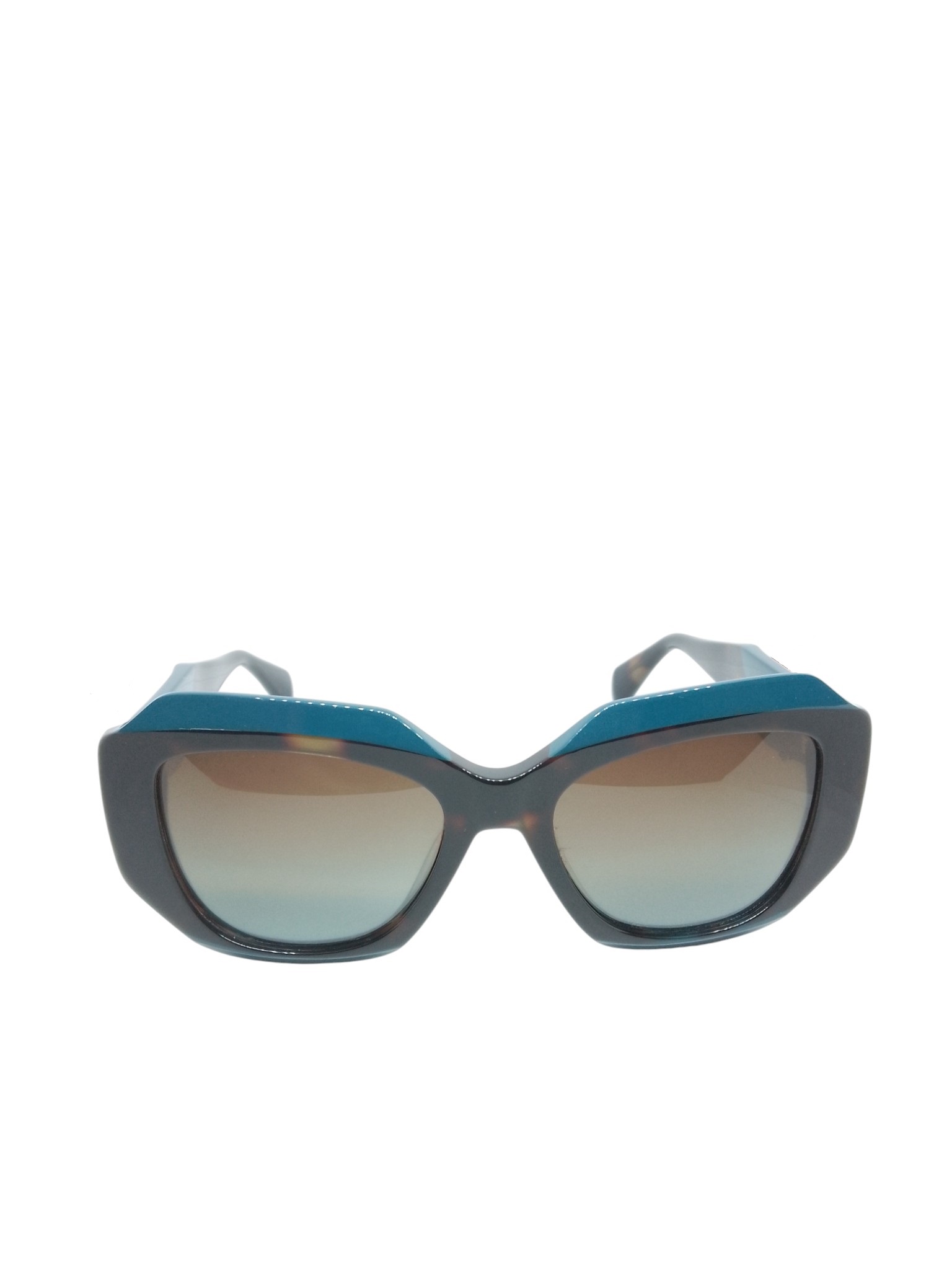 Com design geométrico marcante, essa armação combina acetato azul petróleo na parte superior com tons de marrom translúcido na base, criando um contraste elegante e moderno. O formato gatinho quadrado adiciona atitude e personalidade, equilibrando curvas e linhas retas de forma refinada.