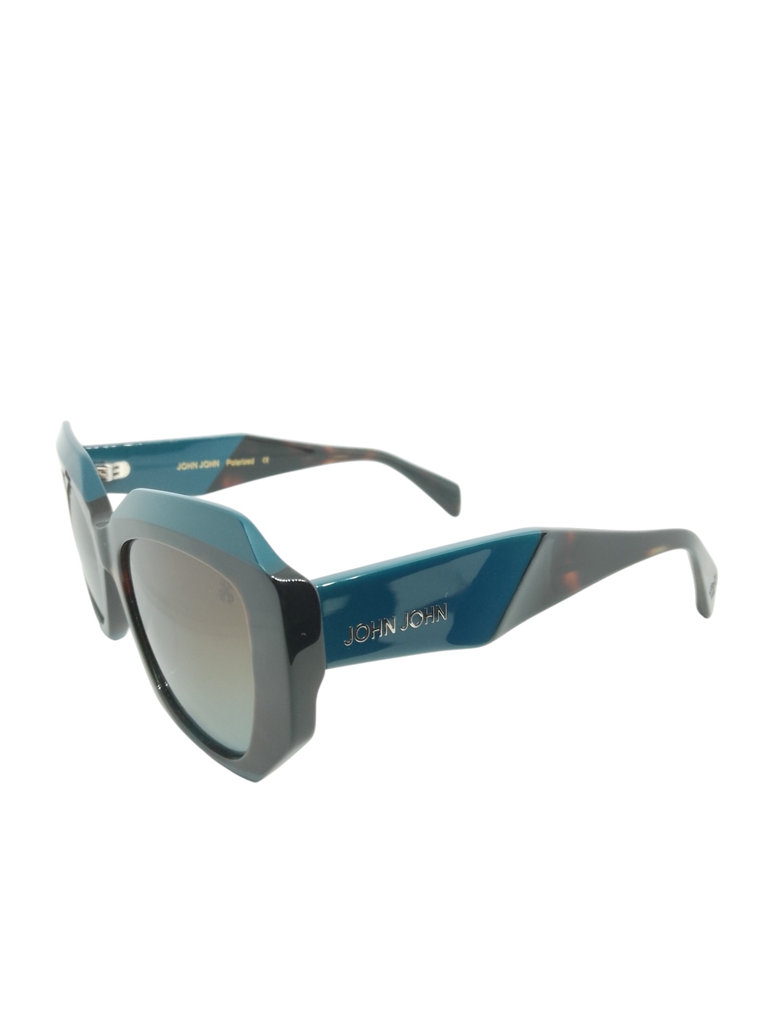 ÓCULOS DE SOL JOHN JOHN JN0060 C2 53–19–145 – ACETATO AZUL COM DETALHES EM MARROM BRILHANTE