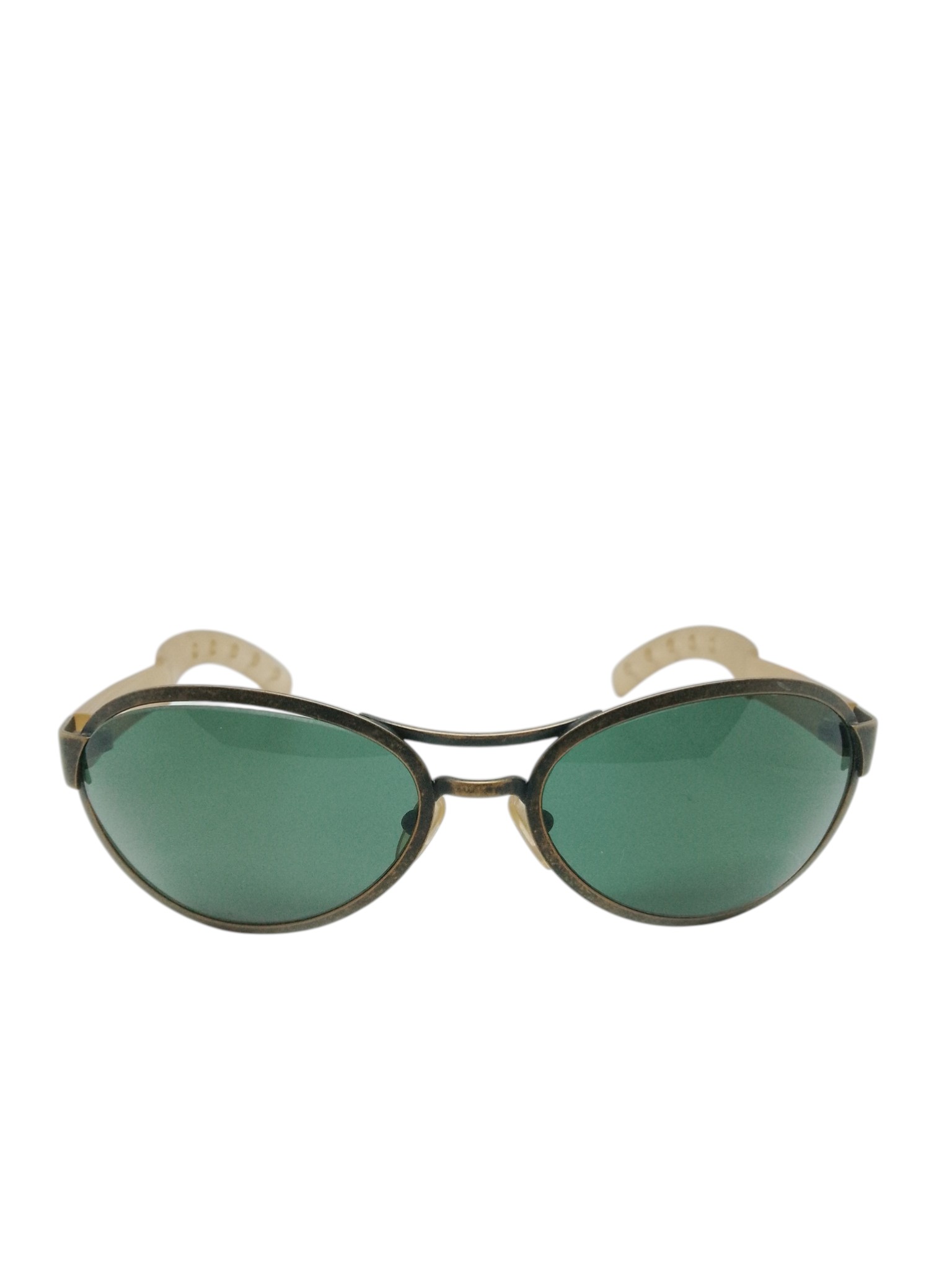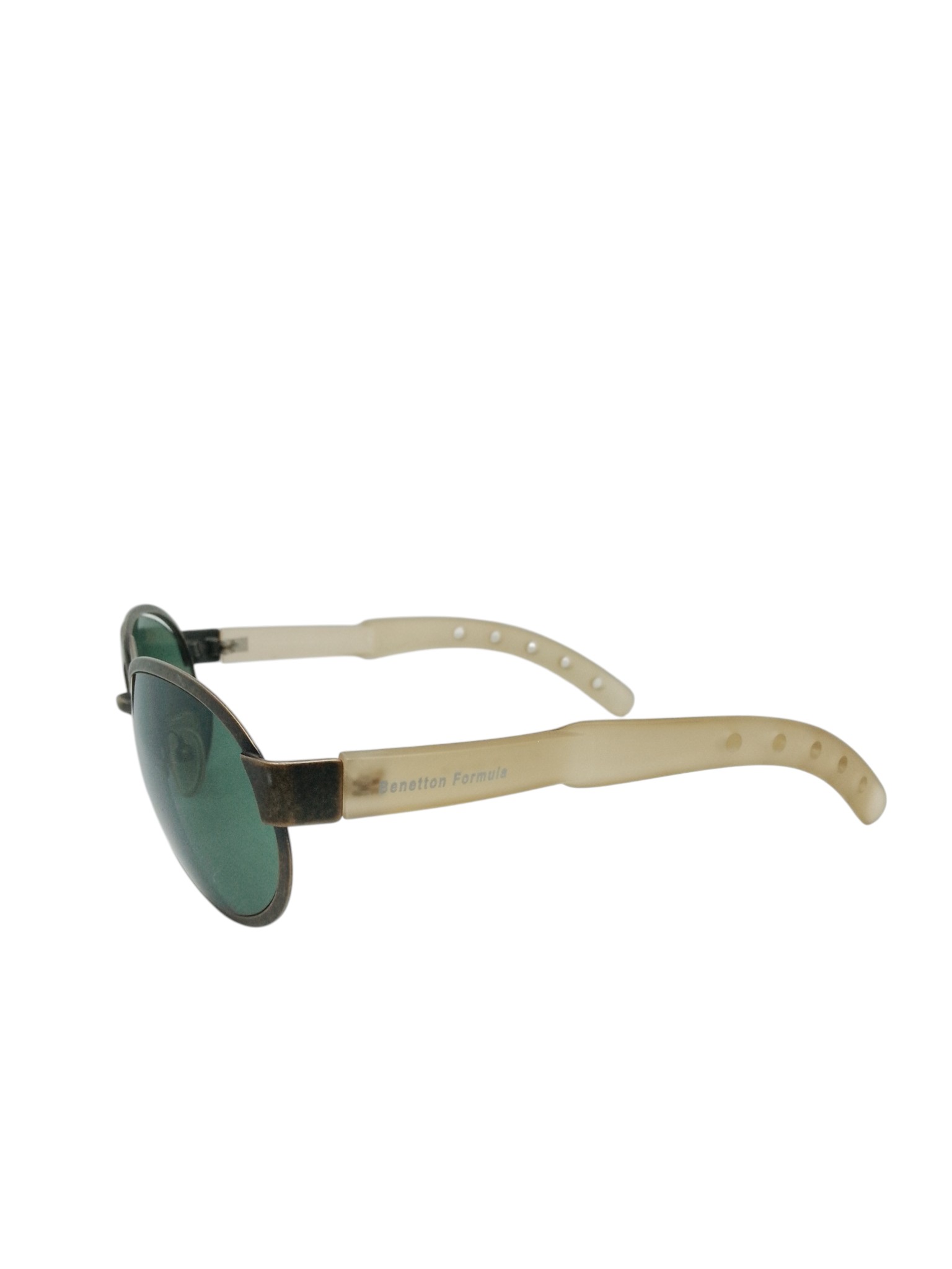 Óculos de sol retrô com design clássico e cheio de personalidade. O modelo BENETTON FORMULA B.F. 014-10A apresenta formato oval elegante com lentes em tonalidade verde, trazendo um visual vintage que combina perfeitamente com as tendências modernas da moda. Sua armação metálica com acabamento em tom envelhecido cria um estilo sofisticado e diferenciado.