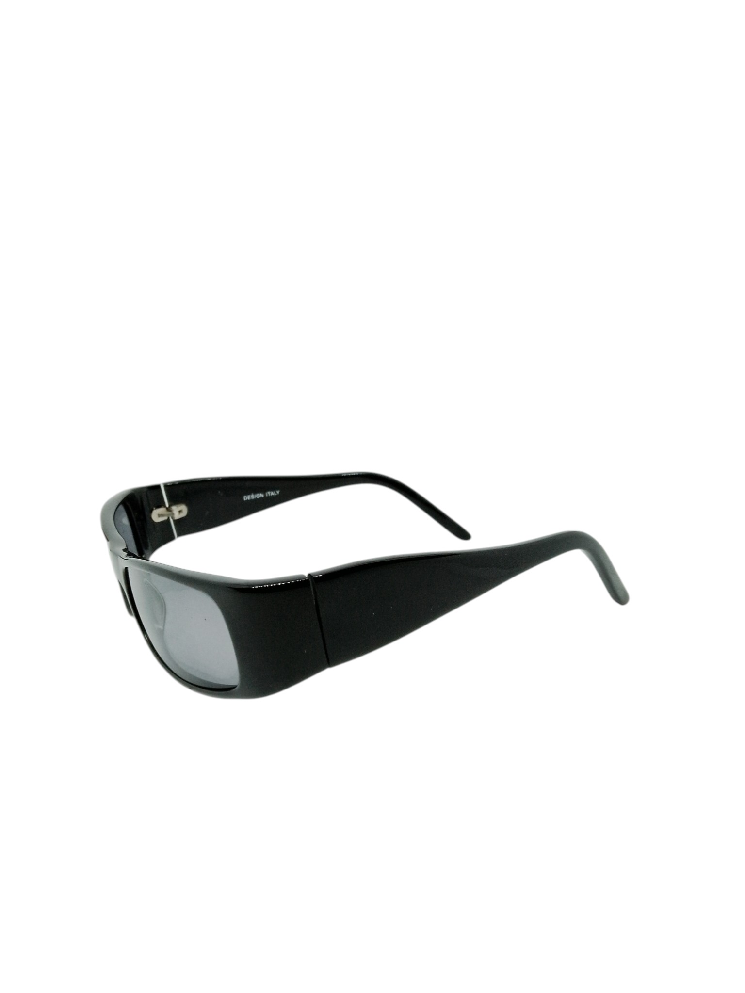 Sua armação em preto com design envolvente proporciona um visual elegante e imponente, além de oferecer conforto e estabilidade durante o uso. As hastes largas reforçam a identidade do modelo e garantem um encaixe firme no rosto. As lentes escuras ajudam a reduzir a intensidade da luz, proporcionando maior conforto visual em ambientes externos.