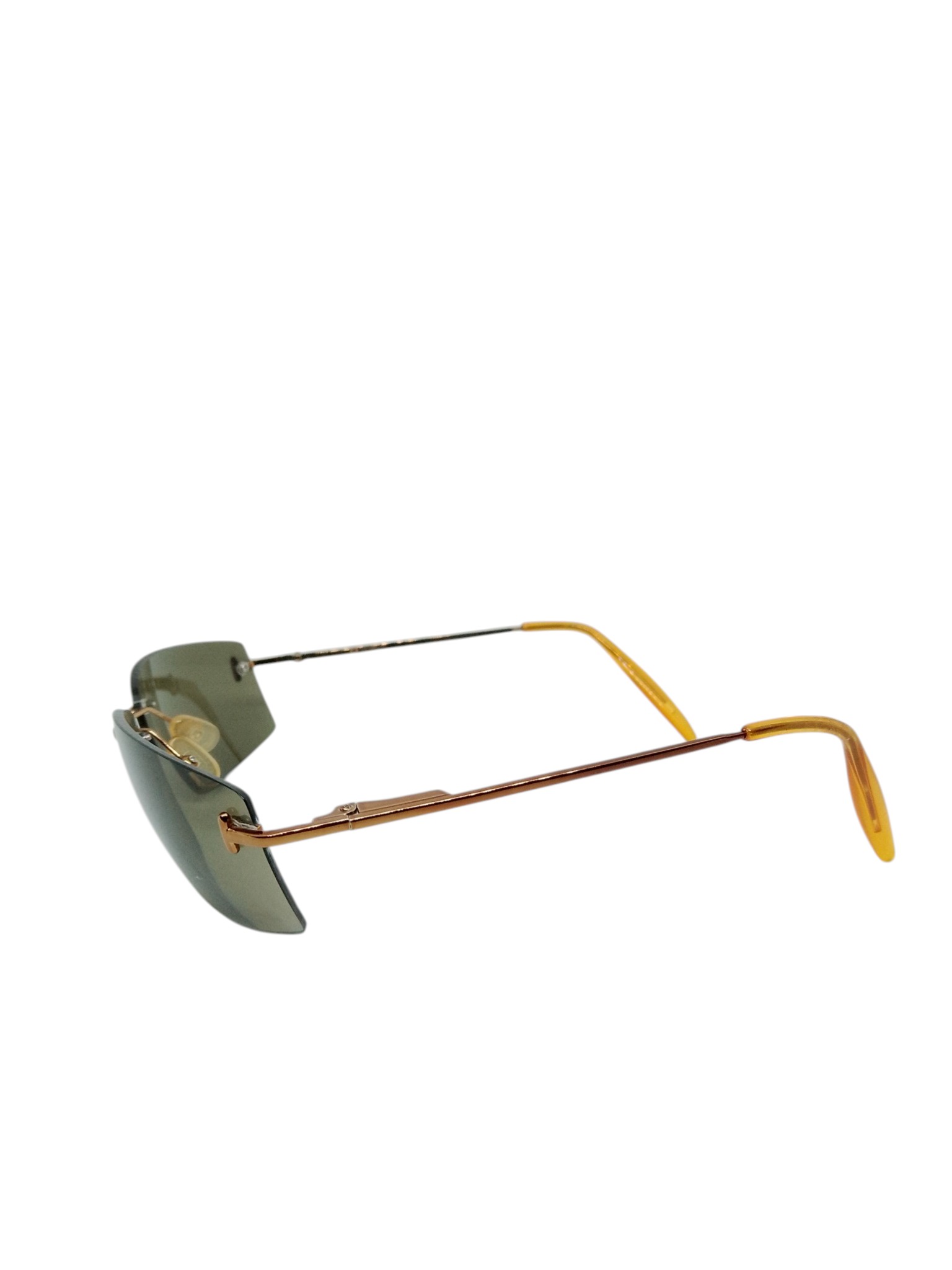 Sua estrutura metálica em acabamento dourado proporciona leveza e um toque de sofisticação ao modelo. O design sem aro reforça a estética moderna e minimalista, enquanto as hastes finas garantem conforto e um encaixe agradável no rosto. As ponteiras em tonalidade âmbar complementam o visual retrô e oferecem maior conforto durante o uso.