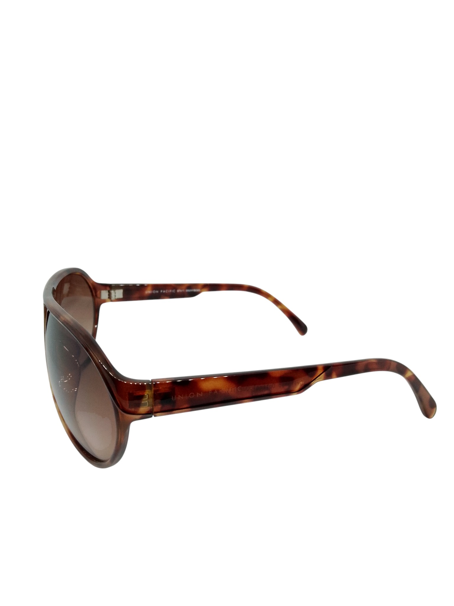 O modelo UNION PACIFIC 97411 apresenta um design retrô marcante, com linhas encorpadas e visual sofisticado que remete aos clássicos dos anos 70. Sua frente possui lentes amplas em tom marrom degradê, oferecendo proteção solar eficiente e uma leitura visual suave, ideal para uso prolongado. A armação em acetato com padrão tartaruga reforça a estética vintage e confere elegância atemporal ao modelo.