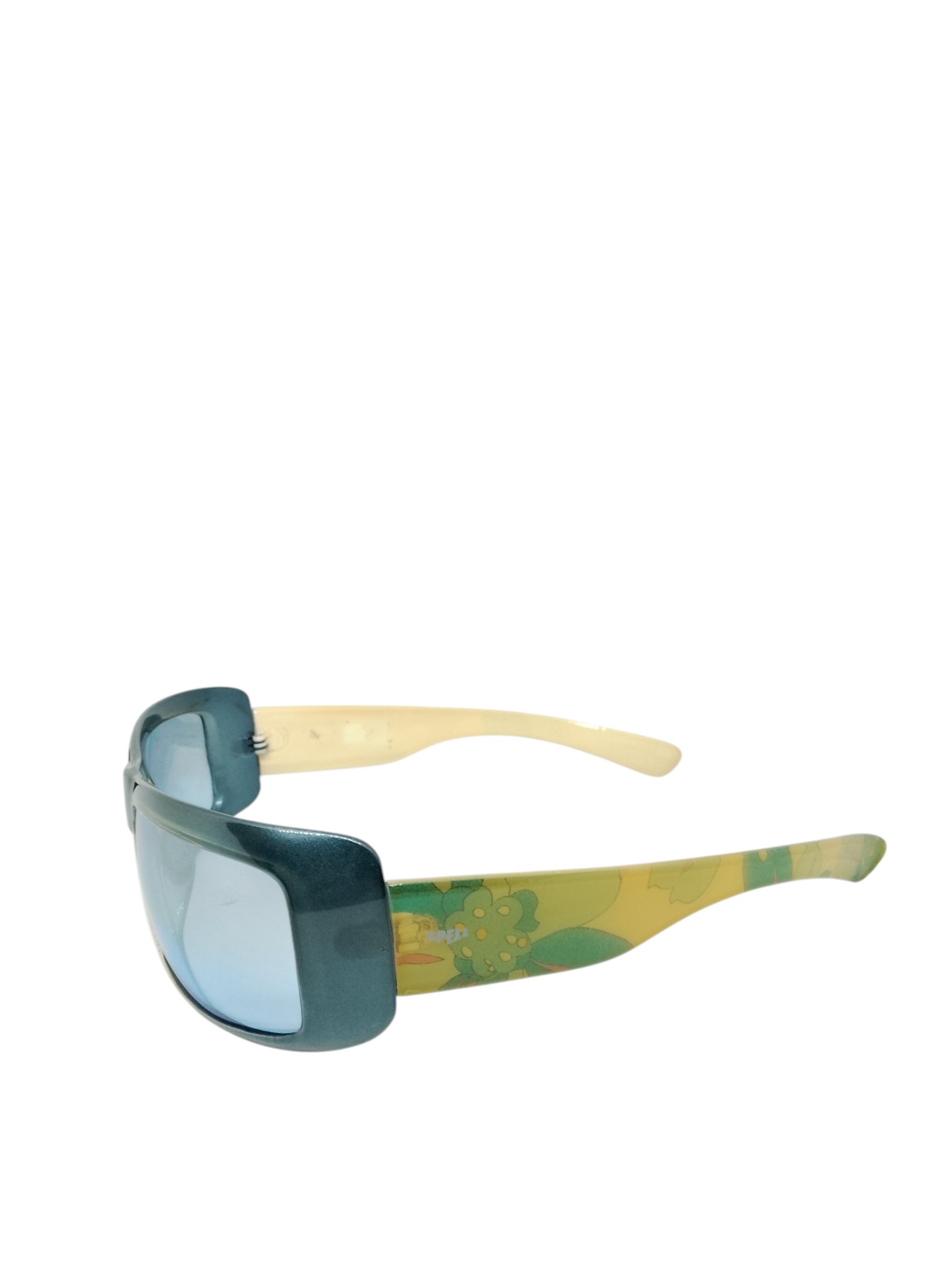 A armação robusta em acetato verde translúcido traz um estilo moderno com pegada vintage. O formato retangular marcante valoriza o rosto e garante presença. As lentes em tom azul claro proporcionam um visual diferenciado e confortável.