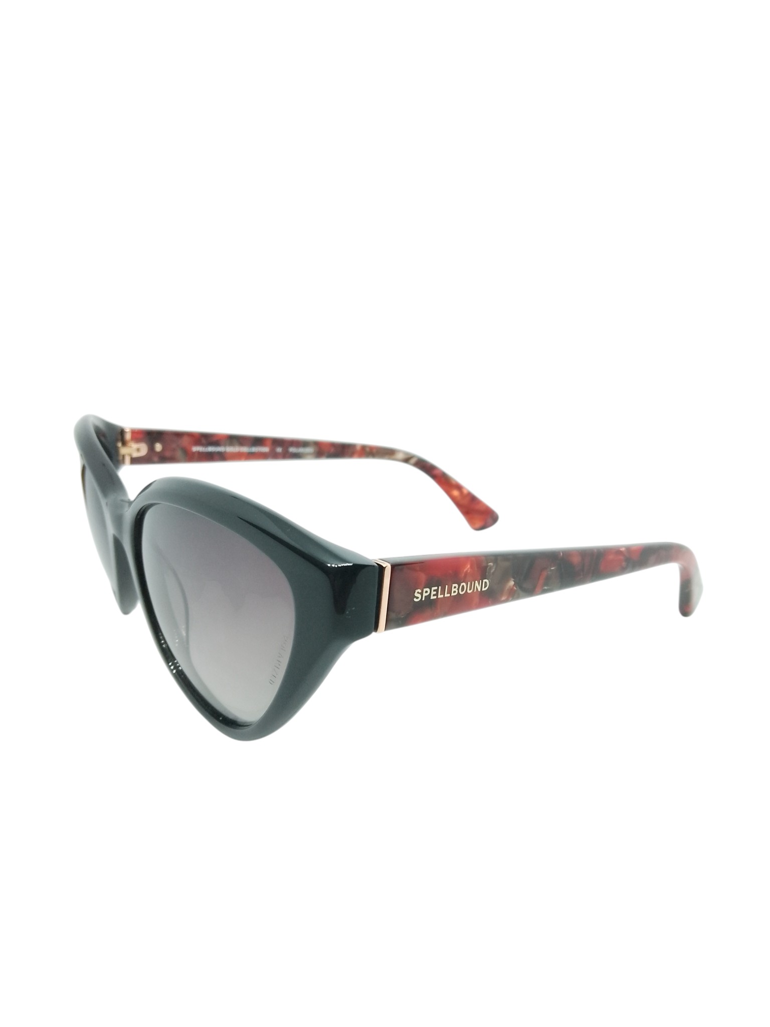 O modelo Spellbound SB14445(S) C.1 traz um design ousado e feminino, inspirado no estilo gatinho retrô, com uma releitura moderna e sofisticada. A frente em acetato preto brilhante confere elegância e presença, enquanto o interior e as hastes exibem um lindo padrão vermelho mesclado marmorizado, que adiciona personalidade e exclusividade ao visual.